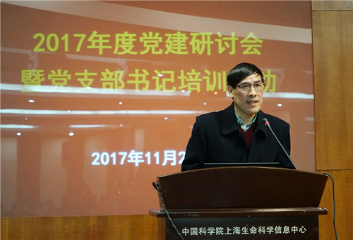 ?????? ?11月22日,上海生科院召开了以“不忘初心、牢记使命、争取新时代合格党员干部”为主题的党建工作研讨会暨支部书记培训活动,此次活动由上海生科院(人口健康领域)、生化与细胞所党委、神经所党委、植生生态所党委联合举办,各机构党员领导干部、两委委员、基层支部书记、部分新党员代表等150余人参加了会议。上海分院分党组副书记、纪检组长,沪区党委副书记、纪委书记田申荣应邀出席活动并授课。会议由上海生科院党委副书记、副院长,生化与细胞所党委书记(兼)倪福弟主持。