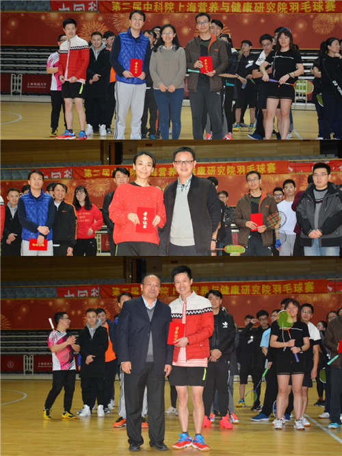 比赛现场,羽球飞梭,运动员精神饱满,身姿矫捷,大家斗志昂扬,激情四射,各参赛队伍赛出了风格、赛出了水平、赛出了友谊、赛出了营养与健康院的精气神。经过小组循环赛和决胜淘汰赛的激烈比拼,最后飞羽队和信息中心队分别获得本届羽毛球冠军、亚军,大数据中心&营养所联队和PICB二队并列季军。上??萍即笱褂鹆烁涸鹑艘⑺?、营养与健康院联合办公室主任孙迪以及人事教育处副处长王明艳为获奖队伍颁发获奖证书。