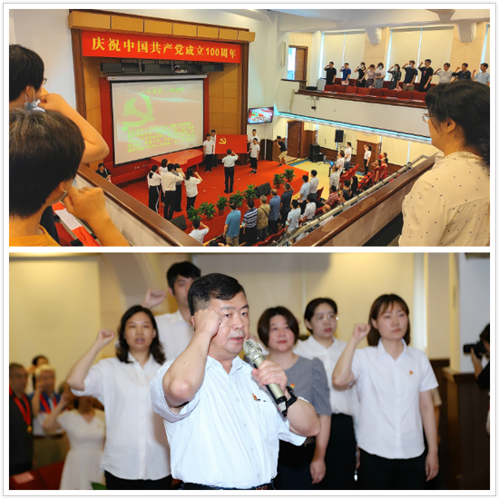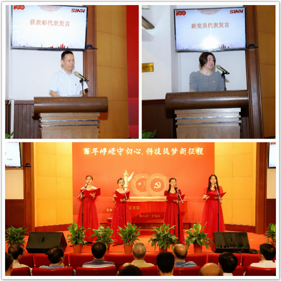 会上,通报了近期荣获上级党组织表彰优秀党务工作者、优秀共产党员、先进基层党组织名单;对研究所优秀共产党员、优秀党务工作者进行了表彰;蔡澎、朱熊向21名老同志代表颁发了“光荣在党50年”纪念章,全场用热烈的掌声向老党员们致以崇高敬意。近两年新入党的5名党员面对鲜红的党旗郑重庄严宣誓,全场党员一起重温入党誓词,洪亮坚定的誓言响彻会场。在报告环节,翟琦巍研究员代表获表彰人员报告了为党工作的心得体会;新党员代表詹丽杏研究员报告了自己加入组织的心路历程;在隆重纪念、表彰先进、尊老感恩的氛围中,研究所青年党团员以诗言志,通过朗诵形式向党报告自己坚定理想的信念和岗位建功的决心?;疃校苎熬┎渭忧熳=ǖ?00周年活动的研究所所长李林院士,以及副所长胡国宏等班子成员,以视频形式为党的生日和研究所未来发展送上诚挚祝福。