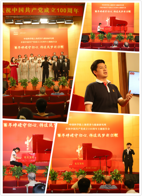 百年征途波澜壮阔,百年初心历久弥坚,忆建党百年辉煌路,砺创新精神促发展。为庆祝中国共产党百年华诞,6月29日下午,中国科学院上海营养与健康研究所召开庆祝中国共产党成立100周年“百年峥嵘守初心,科技筑梦新征程”主题报告会,回顾历史、激励创新,表彰先进、凝聚力量,共同唱响对党、对祖国的高亢颂歌。研究所党委书记、副所长蔡澎,副所长廖侃,党委副书记、纪委书记曹永,中国工程院院士杨胜利,上海分院党群工作部主任朱熊等出席会议。研究所“两委”委员、党支部书记、中层领导干部、工青妇组织负责人、民主党派基层支部负责人和广大科技工作者300余人参加主题活动。报告会由曹永主持。