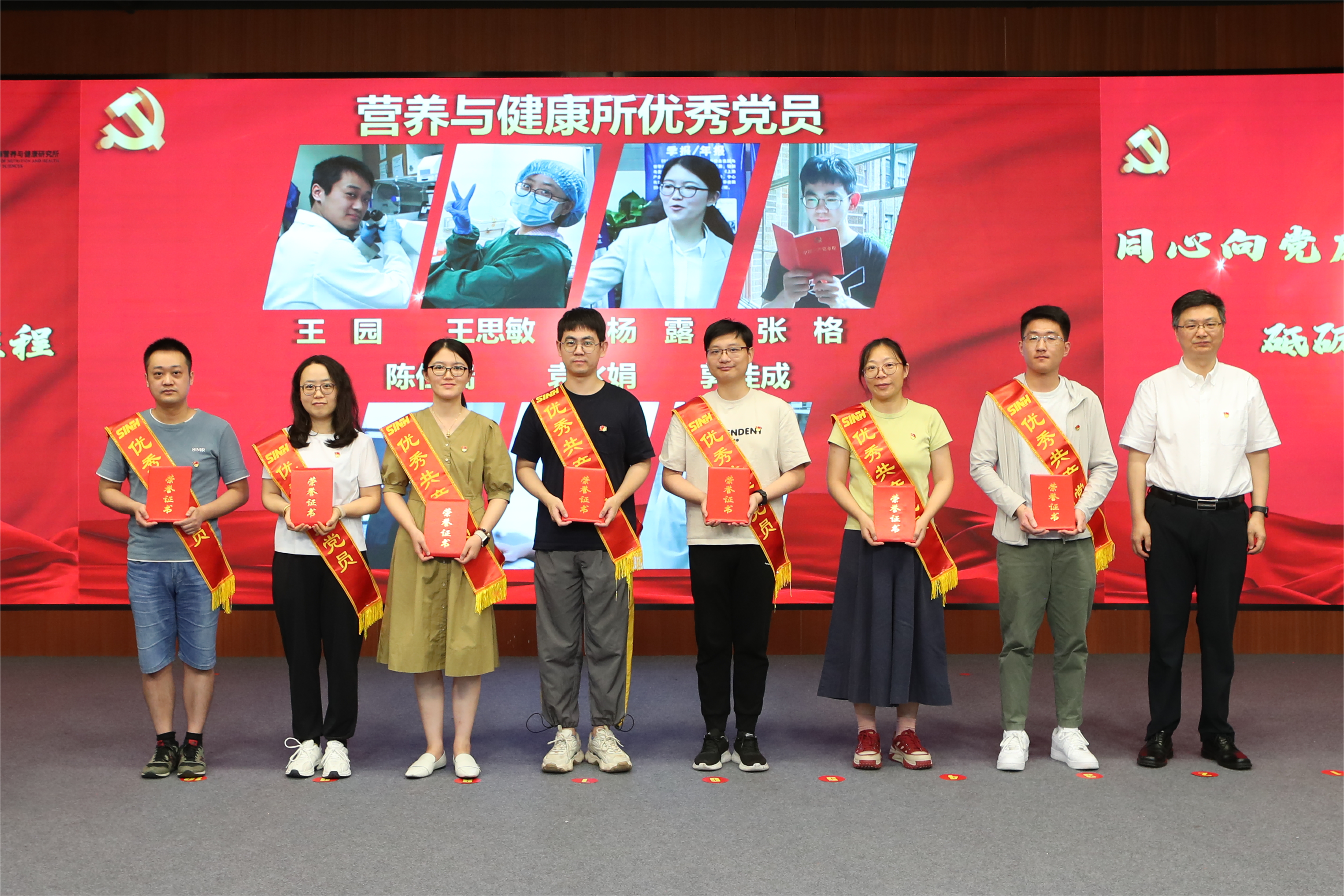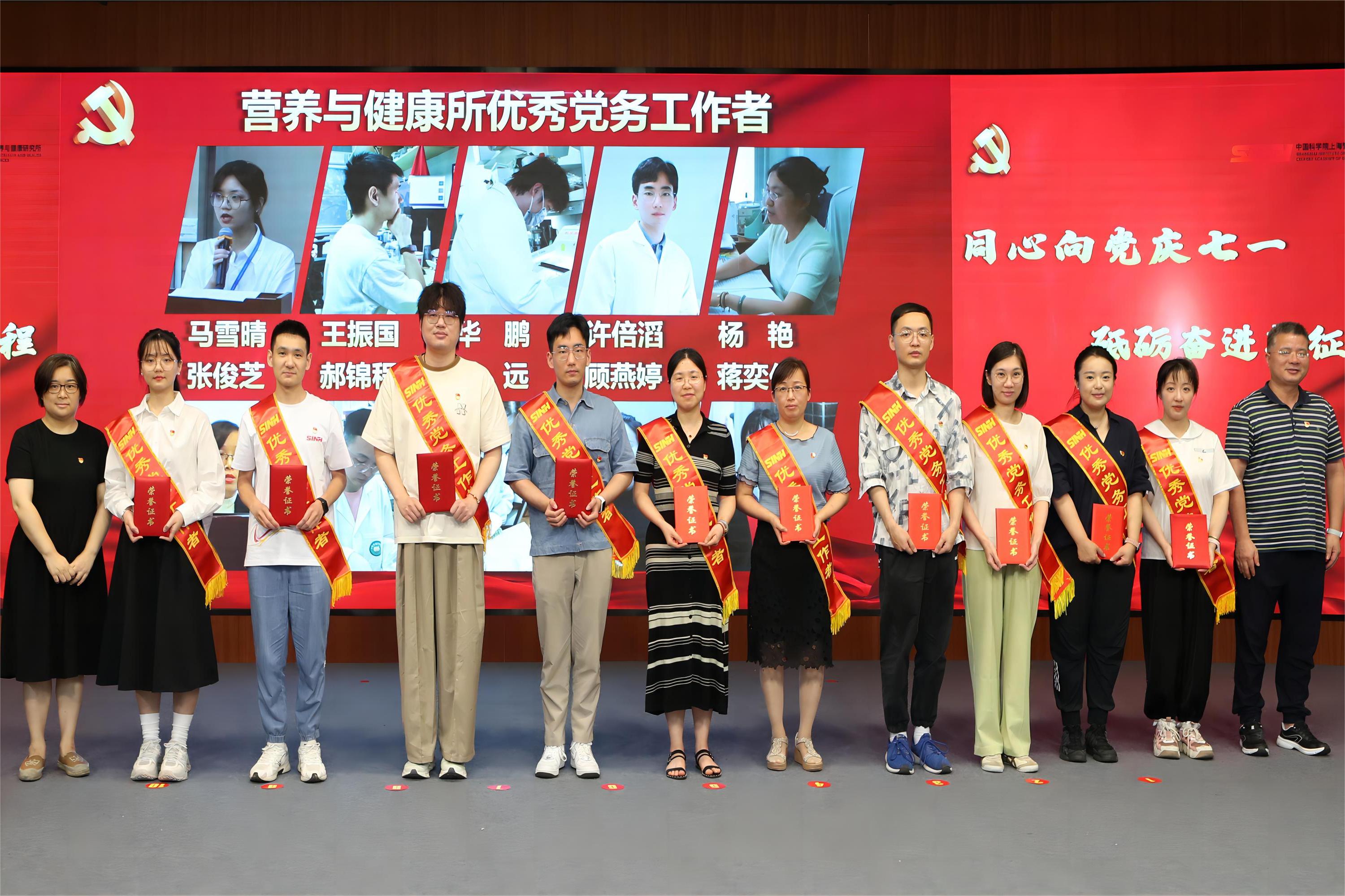 7月16日下午,为庆祝中国共产党建党103周年,深入学习贯彻习近平新时代中国特色社会主义思想,认真落实好党建工作主体责任,扎实推进党纪学习教育,中国科学院上海营养与健康研究所党委组织召开“同心向党庆七一·砥砺奋进新征程”党建工作交流会暨党纪学习教育推进会。中国科学院上海分院党建督导组组长郏静芳、党建工作处(纪检办公室)薛芳应邀出席会议。营养与健康所党委书记瞿荣辉、纪委书记曹永以及研究所“两委”委员、受表彰人员、基层党组织负责人等70余人参加会议。会议由曹永主持。