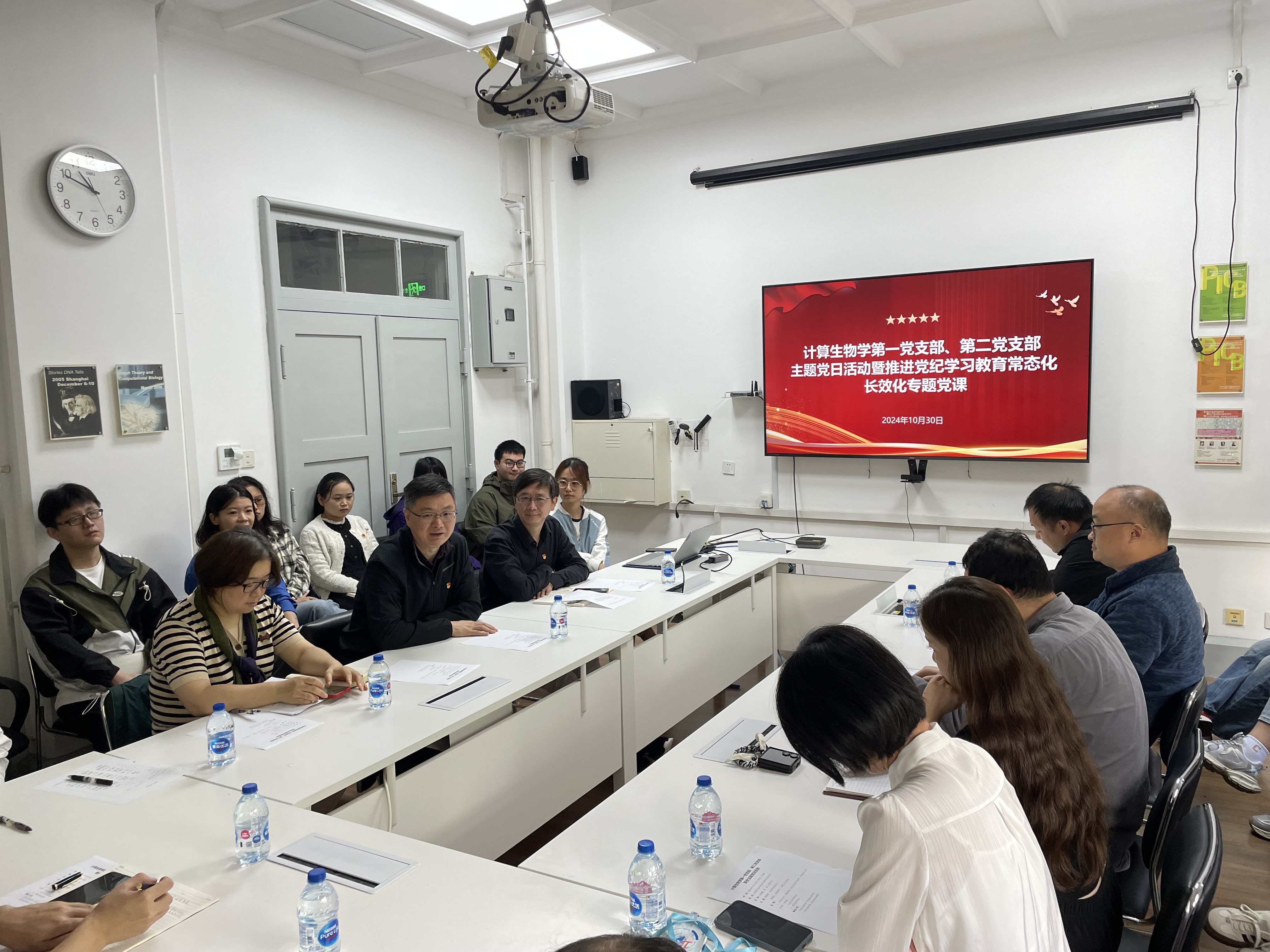 10月30日,中国科学院上海营养与健康研究所计算生物学第一、第二党支部联合召开了主题党日活动暨“推进党纪学习教育常态化长效化”专题学习会。研究所党委书记瞿荣辉,党委委员、人事人才处处长陈建红出席会议,会议由计算一支部书记李海鹏研究员、计算二支部书记李虹研究员共同主持。