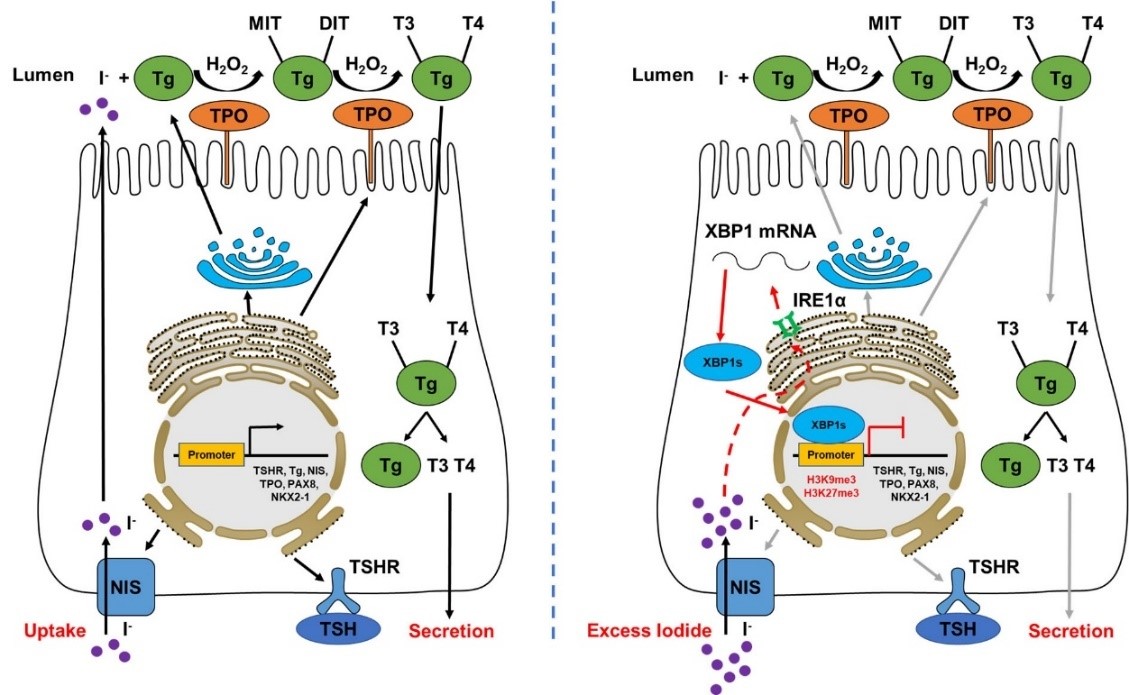 图注:XBP1参与的碘过量对甲状腺激素合成相关基因转录的调控作用