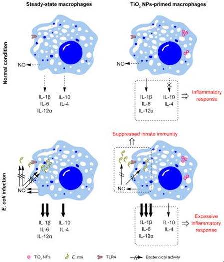 图.二氧化钛纳米颗粒诱导巨噬细胞活化模式图