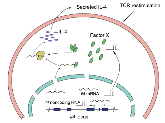 图:lncRNA IL4nc在Th2细胞中正向调控IL4蛋白表达