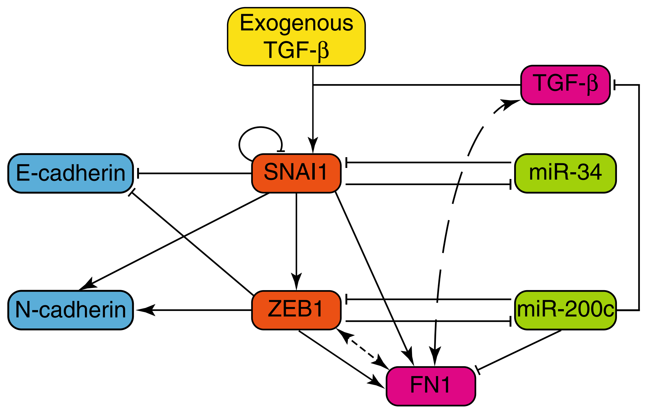 图:动态诱导的竞争性内源RNA调控上皮间质转化示意图