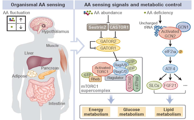 图示:机体氨基酸感应信号与代谢调控
