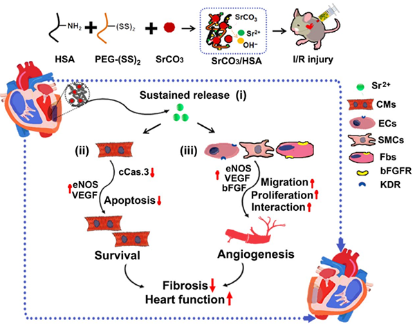 2021年1月15日,国际学术期刊Science Advances在线发表了题为“Strontium ions protect the hearts against myocardial ischemia/reperfusion injury”的研究论文,该研究由中国科学院上海硅酸盐研究所常江研究组与上海营养与健康研究所杨黄恬研究组合作完成,首次揭示了缓释锶离子(Sr2+)的复合水凝胶可通过减少心肌缺血/再灌注引起的心肌细胞凋亡、促进血管新生和心血管细胞间的相互支持有效改善心肌梗死(心梗;myocardial infarction)后的心功能,并抑制纤维疤痕形成。