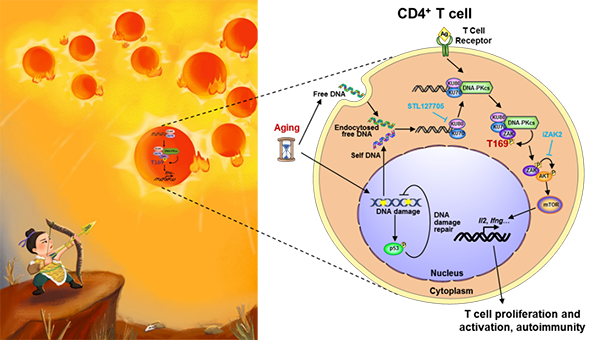 综上所述,该研究揭示了衰老CD4+ T细胞中不依赖于cGAS/STING的DNA感知信号通路,其可促进T细胞的活化和增殖并导致衰老相关自身免疫病的发生发展。进一步研究和开发阻断T细胞中DNA感知信号传导的抑制剂可能有利于临床治疗衰老相关的自身免疫性疾病。