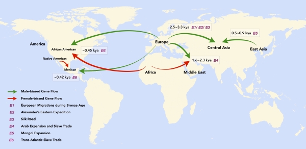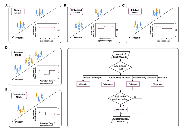 性别偏向性实际上广泛存在于人群基因交流过程中,即特定祖源的男女遗传贡献存在差异。非裔美国人(African Americans)和拉丁裔美洲人(Hispanic Americans or Latino American)为学界熟知的存在性别偏向性混合的人群。性别偏向性混合的研究对了解人群形成和演化历程、理解现代人类遗传差异、以及指导医学研究都有重要的理论意义和应用价值。然而,受限于分析方法,人群演化历史上错综复杂的基因交流中存在的性别偏向性长期以来未得到充分研究,特别是一些经历过多次而复杂基因交流历史的人群,曾经发生的不同方向的性别偏向混合往往被忽视。MultiWaverX的提出在很大程度上为这些问题的解决提供了新方法和新思路。
