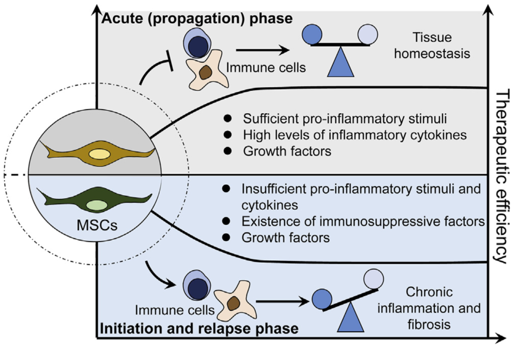 图注:间充质干细胞(mesenchymal stem cells, MSCs)免疫调节可塑性及其在炎症性疾病治疗中的应用潜能。