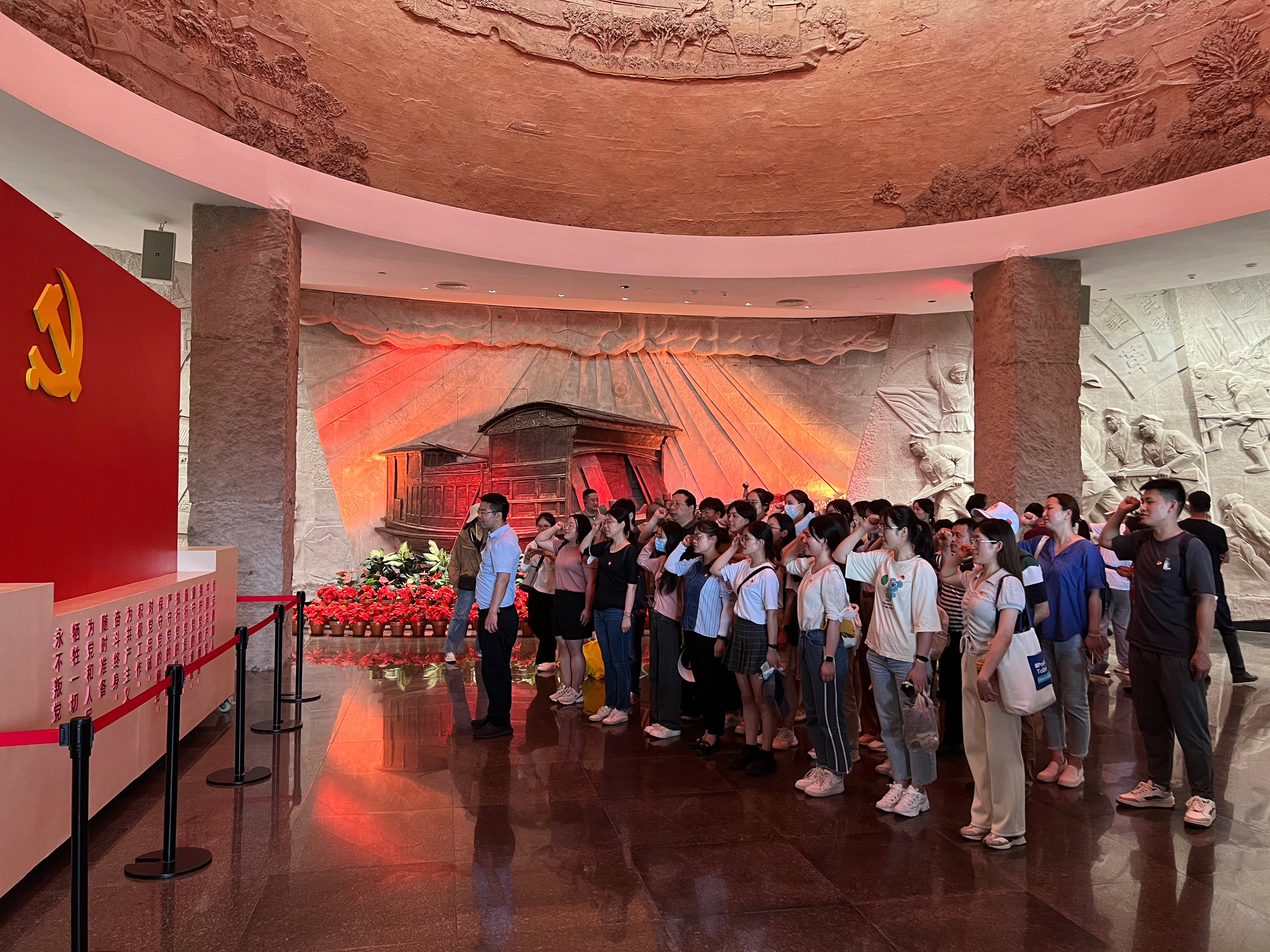 走进南湖革命纪念馆,鲜红的党旗下,肿瘤微环境第一党支部书记王跃祥同志带领全体党员庄严宣誓,一句句铿锵有力的誓言表达了全体党员永远跟党走、为党的事业奋斗终身的信心和决心。在南湖革命纪念馆内,一件件展品、一幕幕场景,使大家对党的革命历程和“红船精神”有了更加深刻的感悟,深受红色教育洗礼,感受颇多,受益匪浅。
