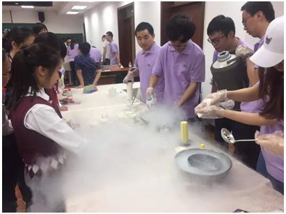 60多个化学实验等着孩子们来体验。中科院上海有机所的趣味实验展厅,迎来了超过1000位的社会公众。液氮冰淇淋,泡泡火山,彩色鸡尾酒,酷炫风暴瓶……这些实验现象很明显,要么颜色变化,要么形态变化,给予孩子们意想不到的结果,加上志愿者们耐心到位的讲解,孩子们无不感叹化学的神秘和奇妙,在摊位前久久不愿离去。