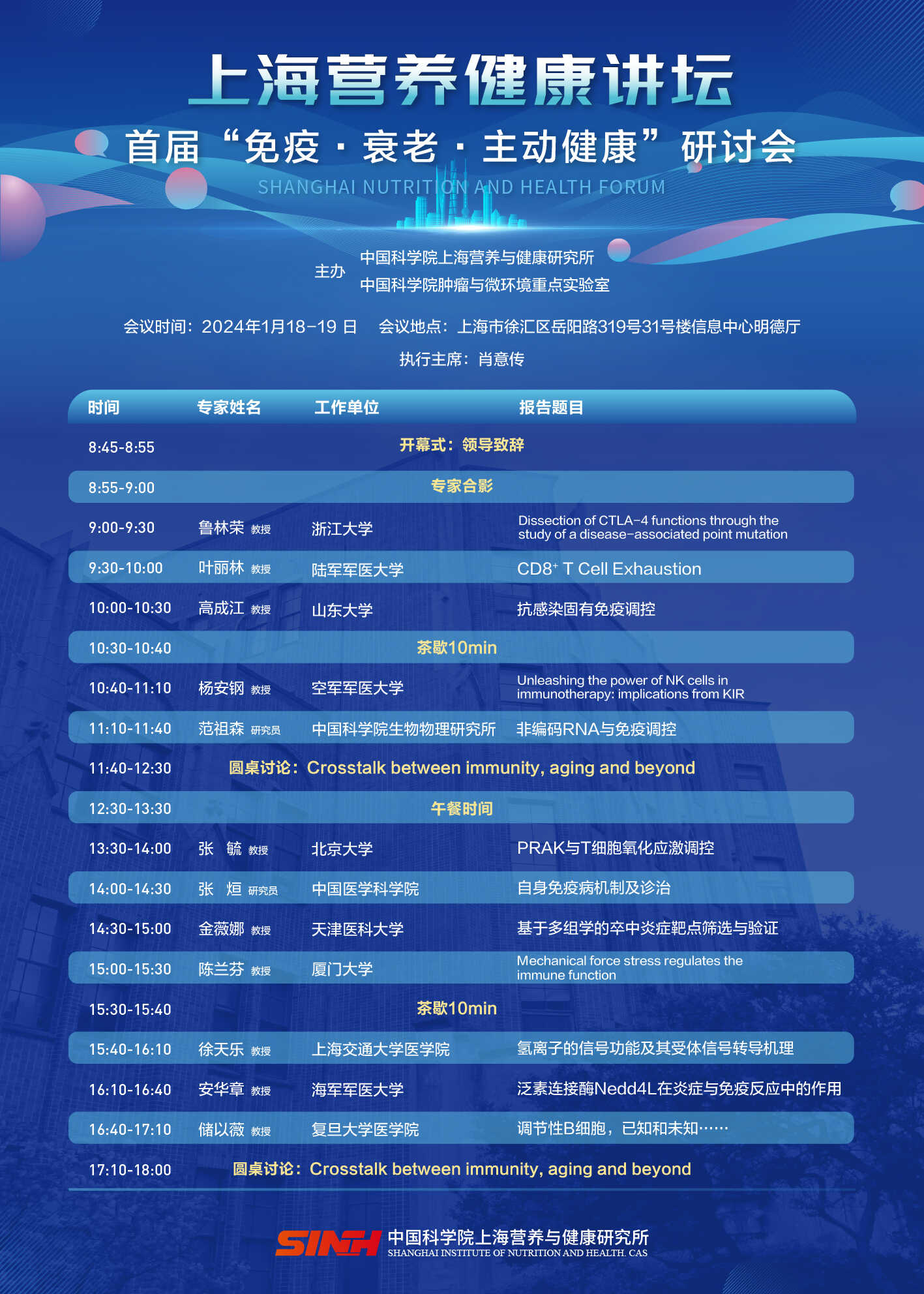 上海营养健康讲坛首届“免疫·衰老·主动健康”研讨会丨上海营养健康讲坛第一百一十一期学术报告