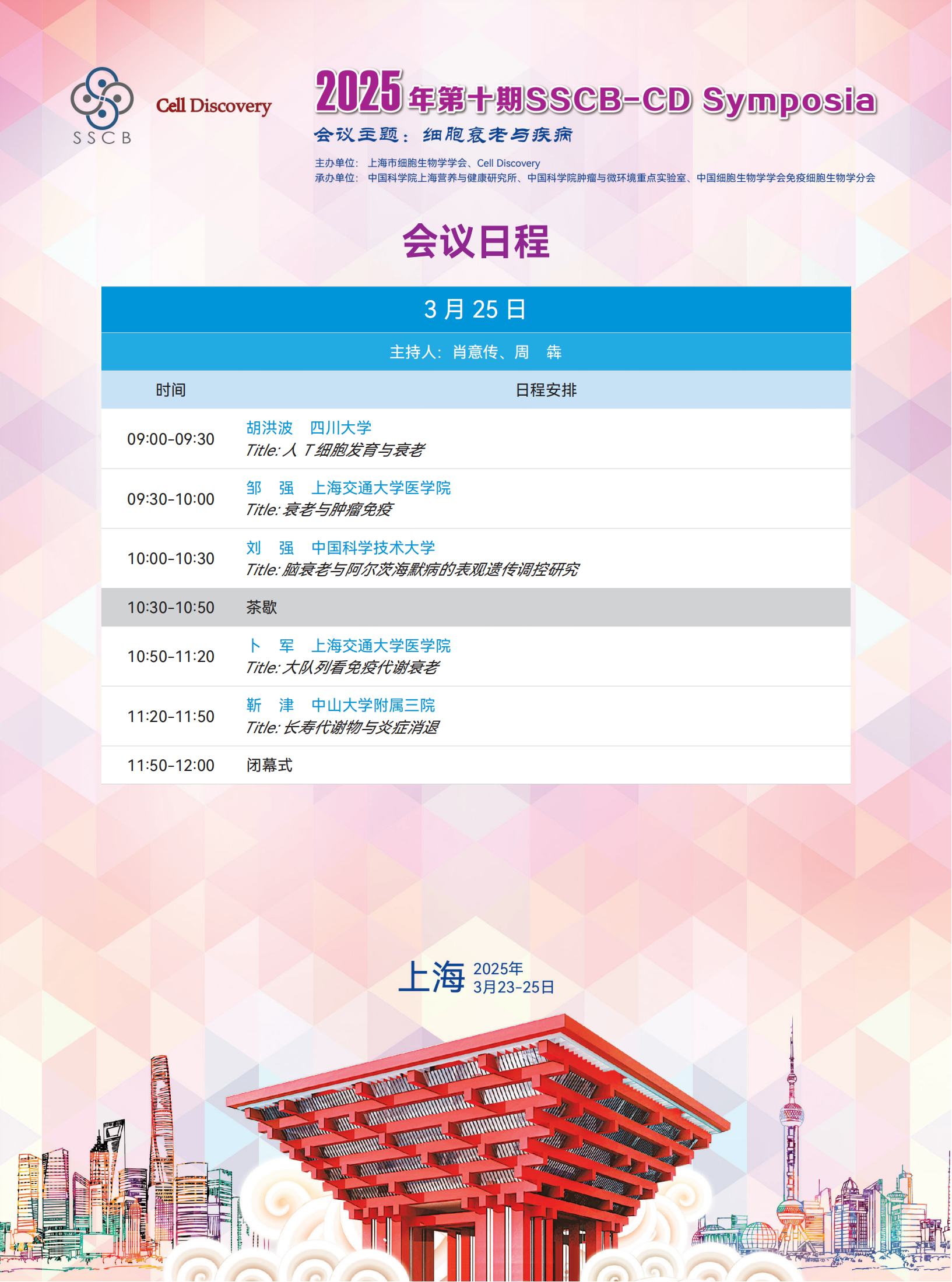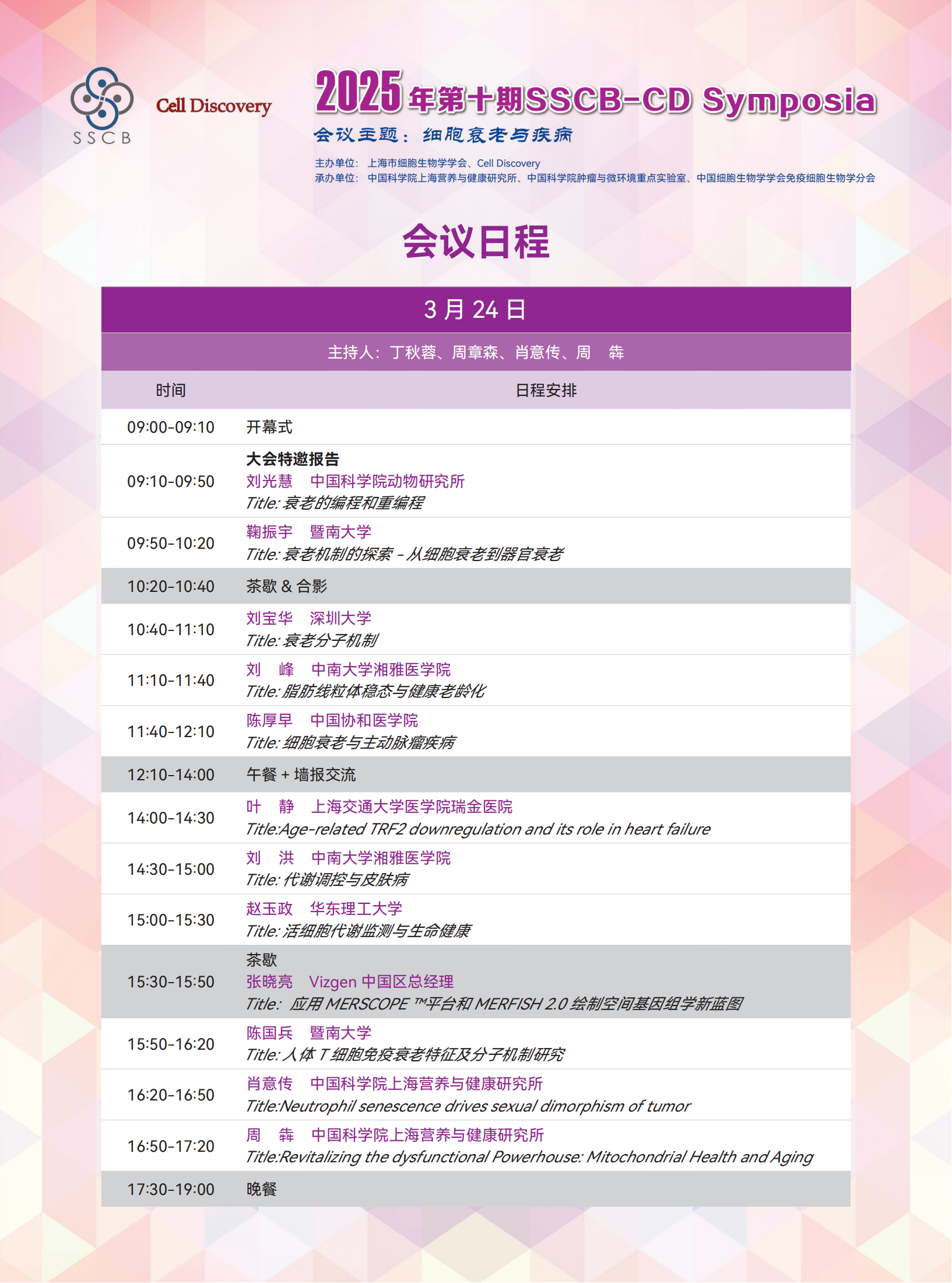 3月24-25日|细胞衰老与疾病大会——2025年第十期SSCB—CD?Symposia