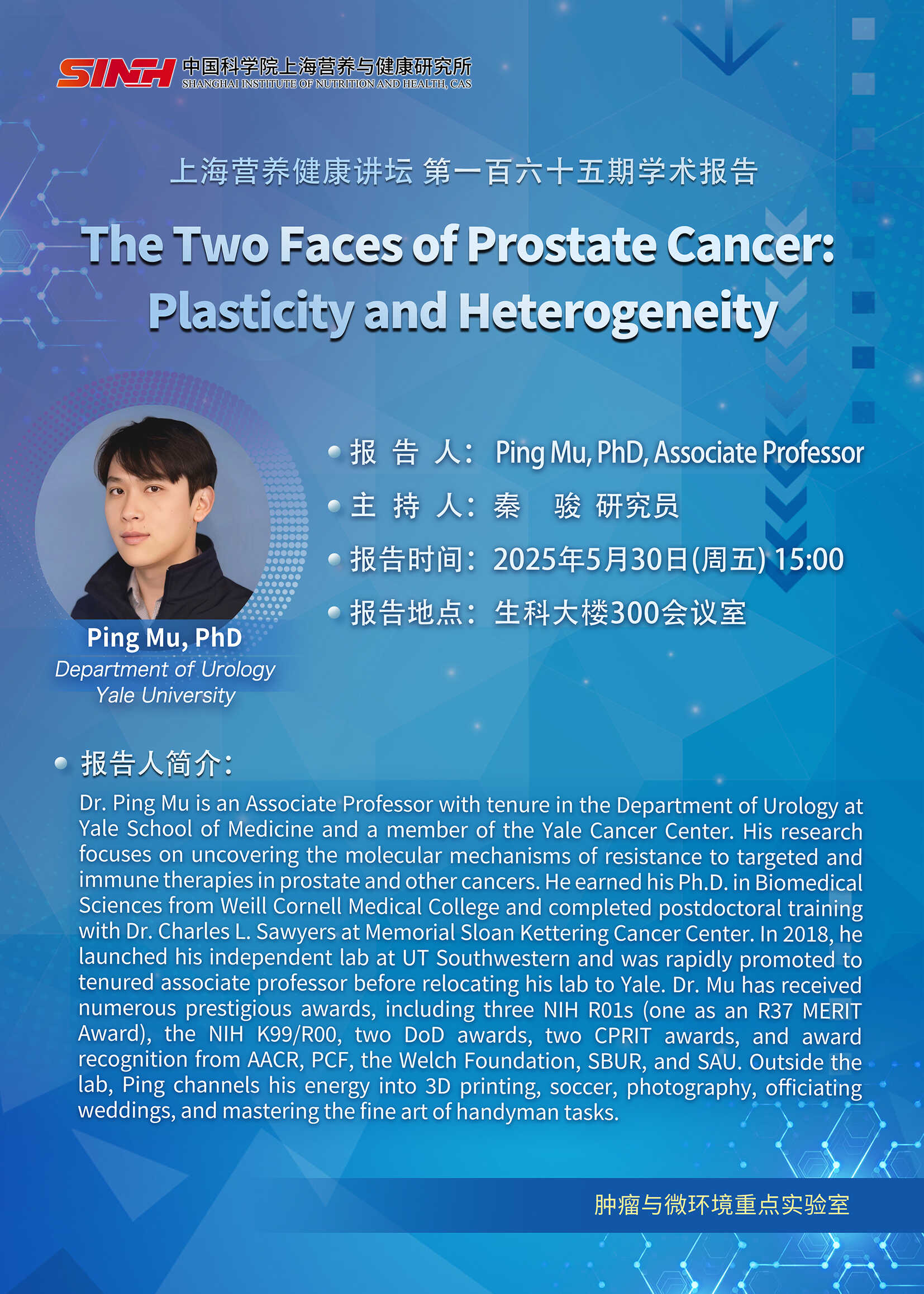5月30日|The Two Faces of Prostate Cancer:Plasticity and Heterogeneity-上海营养健康讲坛