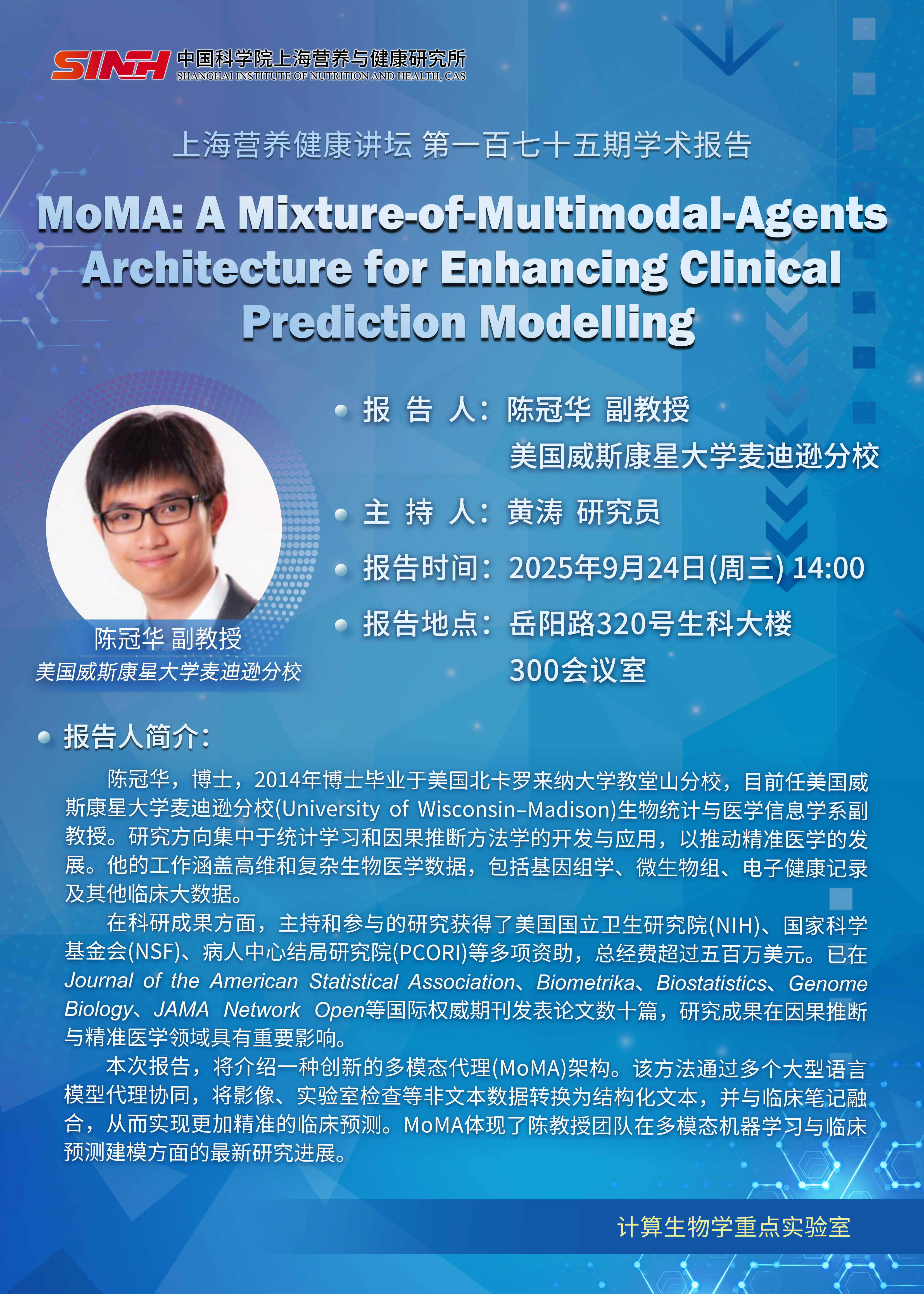 9月24日|MoMA A Mixture-of-Multimodal-Agents Architecture for Enhancing Clinical Prediction Modelling-上海营养健康讲坛