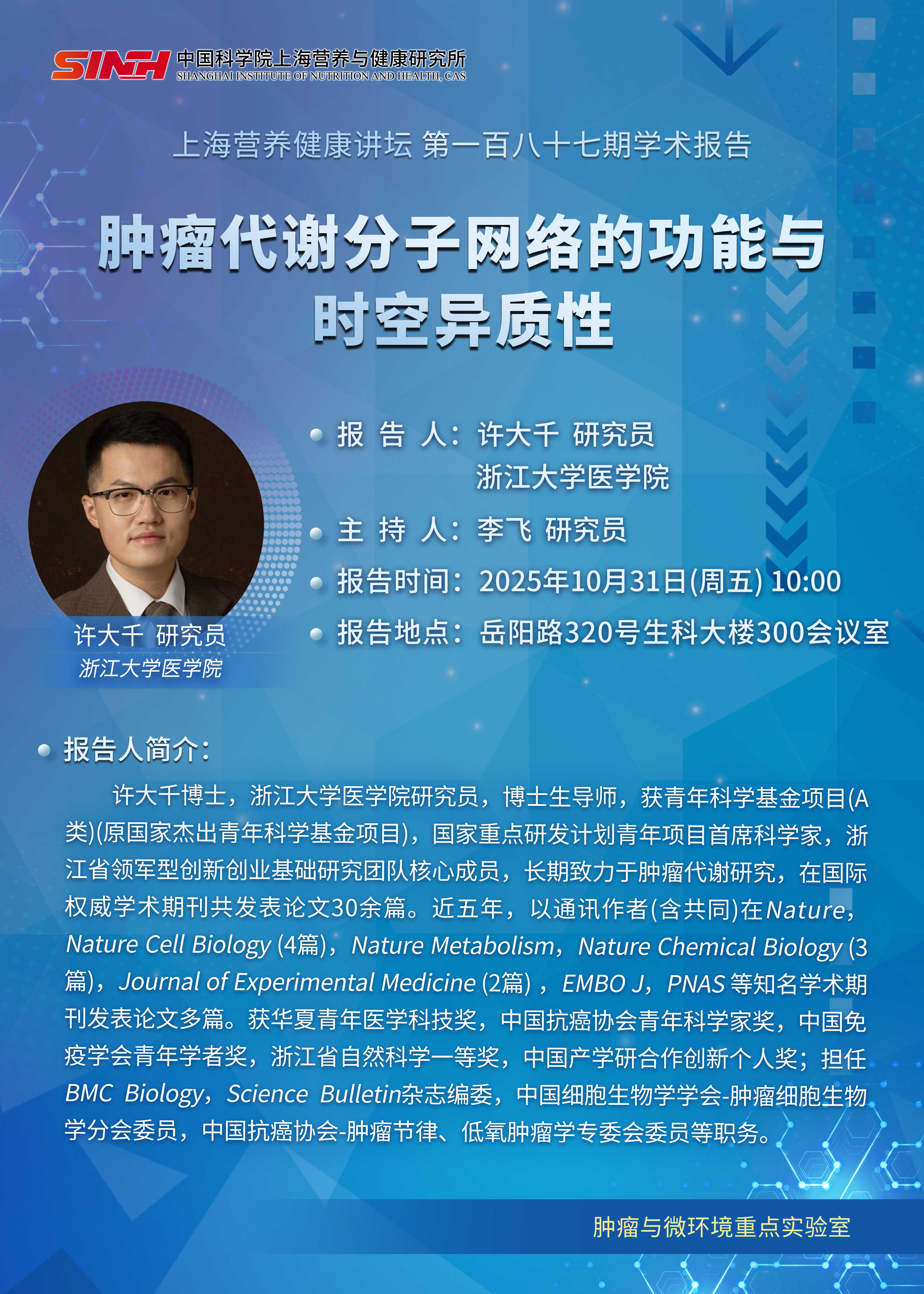 10月31日|肿瘤代谢分子网络的功能与时空异质性-上海营养健康讲坛