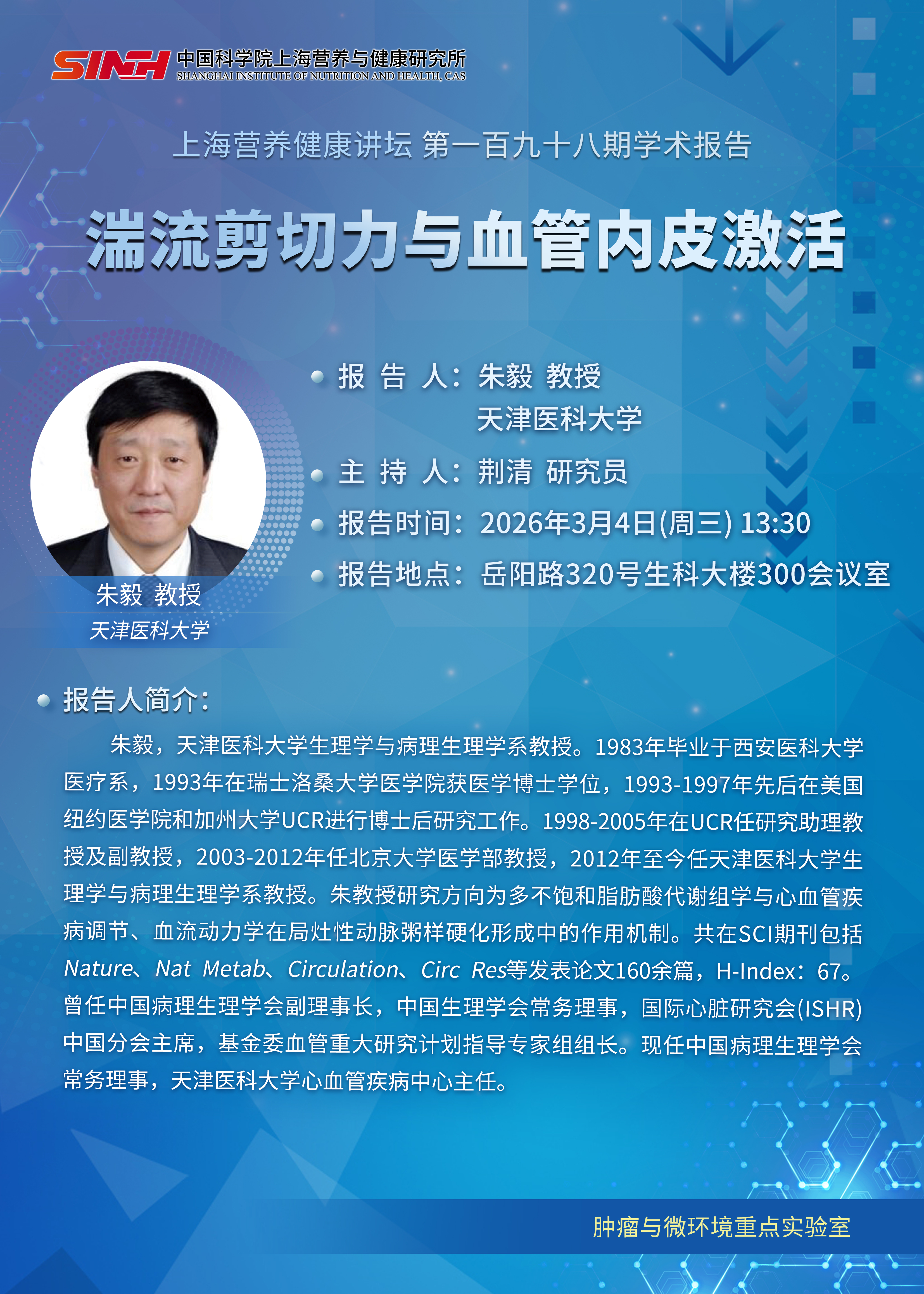 3月4日|湍流剪切力与血管内皮激活-上海营养健康讲坛