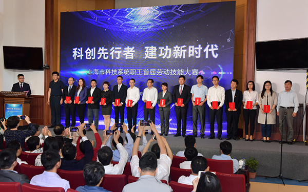 启动仪式上,刘岩、陈龙、蔡澎、郑君峰、陈勤泉来到舞台中央,与莫负春一起点击大屏幕,启动科技系统首届劳动技能大赛。蔡澎、倪福弟以及其他与会领导分别为获奖个人和集体颁发了奖杯和证书。本次大赛旨在着力推动上海成为全球学术新思想、科学新发现、技术新发明、产业新方向的重要策源地?;疃缮虾J锌萍脊せ嶂靼?、中科院上海生命科学研究院工会承办。
