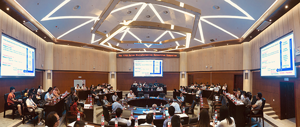 研讨会主题为人工智能与生物信息学?;嵋檠肓酥腥蘸裙蒲性核案咝5?1位专家做报告,这些专家来自中科院上海营养与健康研究所、中科院生物物理研究所、中科院植物生理生态研究所、上海交通大学、华东师范大学、同济大学、贵州师范大学、阿卜杜拉国王科技大学(沙特阿拉伯)、日本国立遗传学研究所、综合研究大学院大学(日本)、东海大学(日本)、日本国立科学博物馆、九州工业大学(日本)、琉球大学(日本)、韩国国家生物信息中心、韩国浦项科技大学、韩国巴斯德研究所、首尔大学(韩国)、釜山大学(韩国)、犹他大学亚洲分校(韩国)、江原大学(韩国)等,创此系列会议报告专家人数之最。约100位听众聆听了会议报告。
