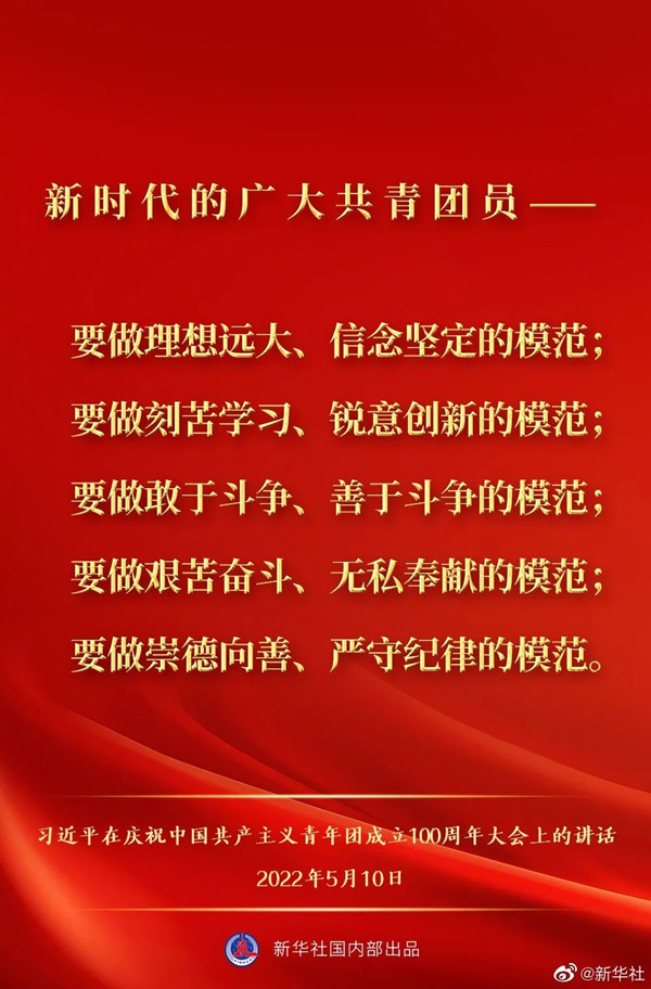 学习了习近平总书记关于中国共产主义青年团成立100周年的重要讲话后,内心澎湃激动!“自古英雄出少年”,广大团员青年为祖国的飞跃发展贡献了重要力量。在今后的工作中,我们也要继续从广大青年中汲取力量,在实现中华民族伟大复兴中国梦的新征程上奋勇前进。