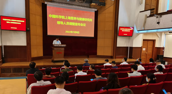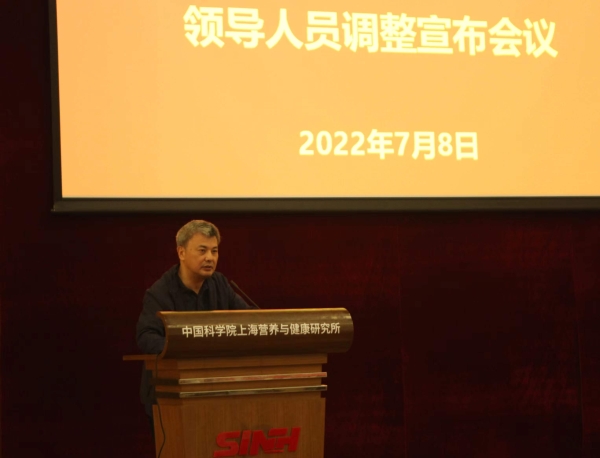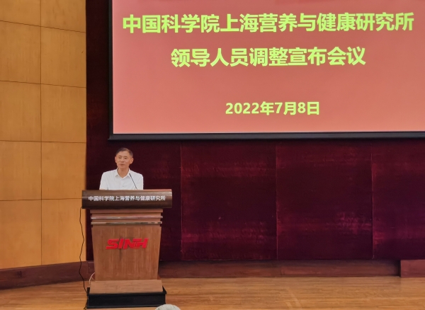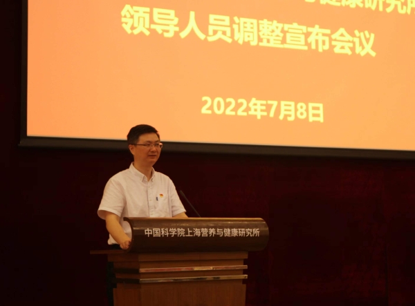 2022年7月8日下午,中科院上海营养与健康研究所召开领导人员调整宣布会议,上海分院分党组书记、沪区党委书记李正华,上海市科技党委及上海分院组织部门相关同志,研究所领导班子成员、两委委员、科研骨干代表、中层干部、党支部书记等参加会议?;嵋橛缮虾7衷喝肆ψ试床恐魅渭孀橹刹看ΥΤず沃鞒?。