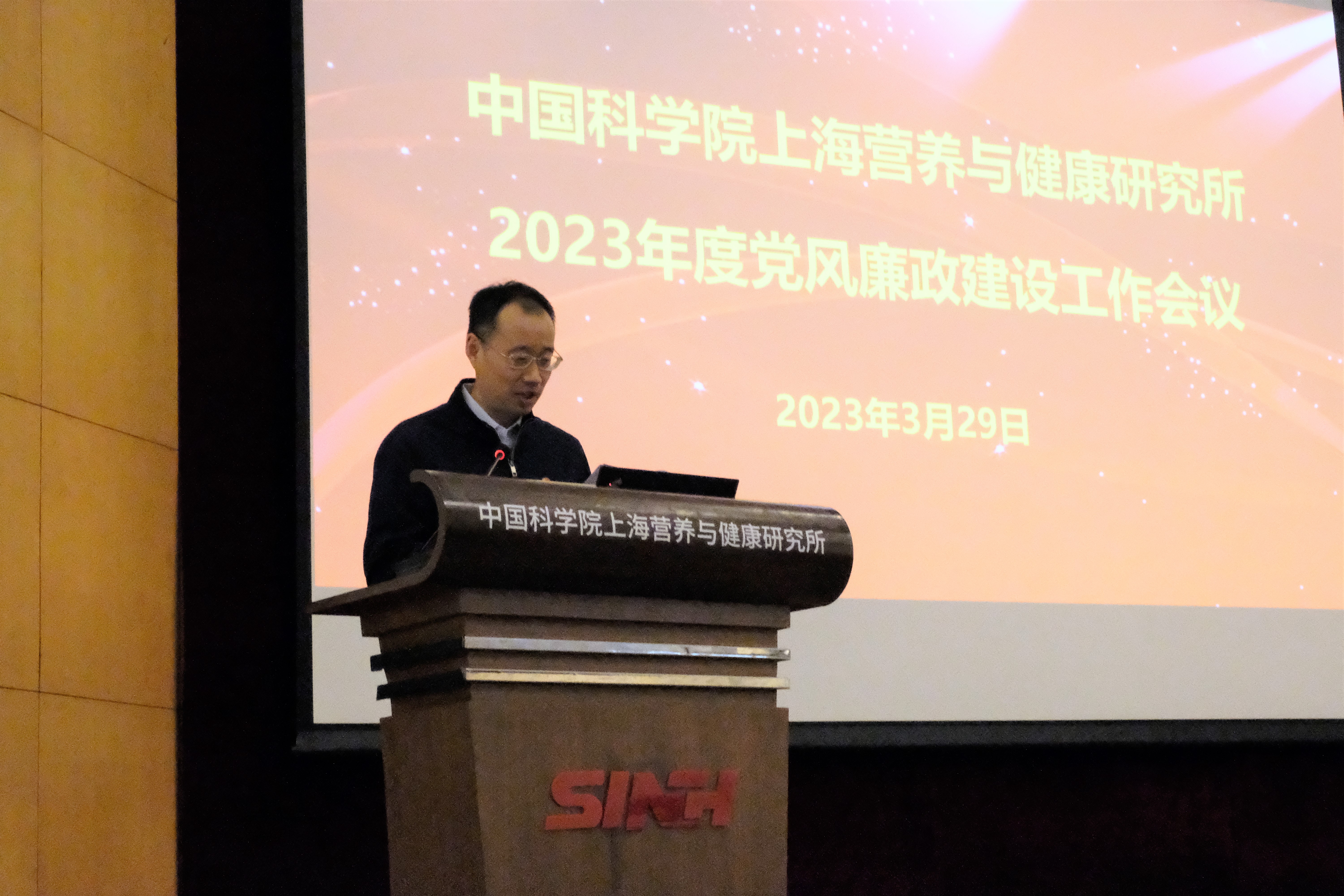2023年3月29日,中国科学院上海营养与健康研究所召开了2023年度党风廉政建设工作会议。研究所领导班子成员、党委委员、所务委员、纪委委员,党支部以及工会、团委、妇委、学生会等群团组织负责人近150人参加了会议?;嵋橛杉臀榧遣苡乐鞒?。