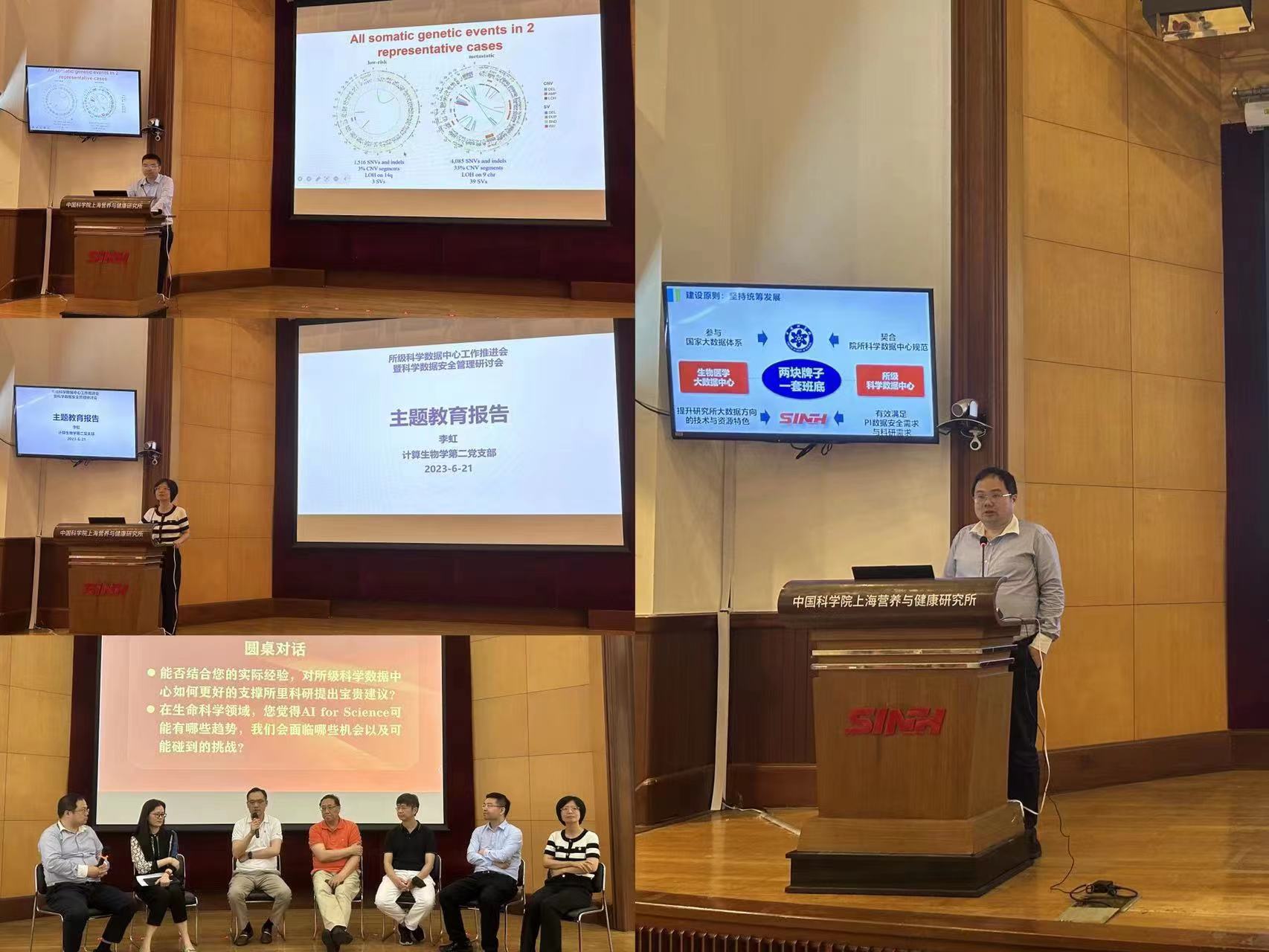 计算生物学第二党支部书记李虹作数据安全和生物安全主题教育报告。张国庆作“所级科学数据中心建设与服务总体情况介绍”主旨报告。宗耕、王跃祥两位研究员带来“国内外队列研究数据使用概况”“胃肠间质瘤多组学图谱的描绘及应用”学术报告。