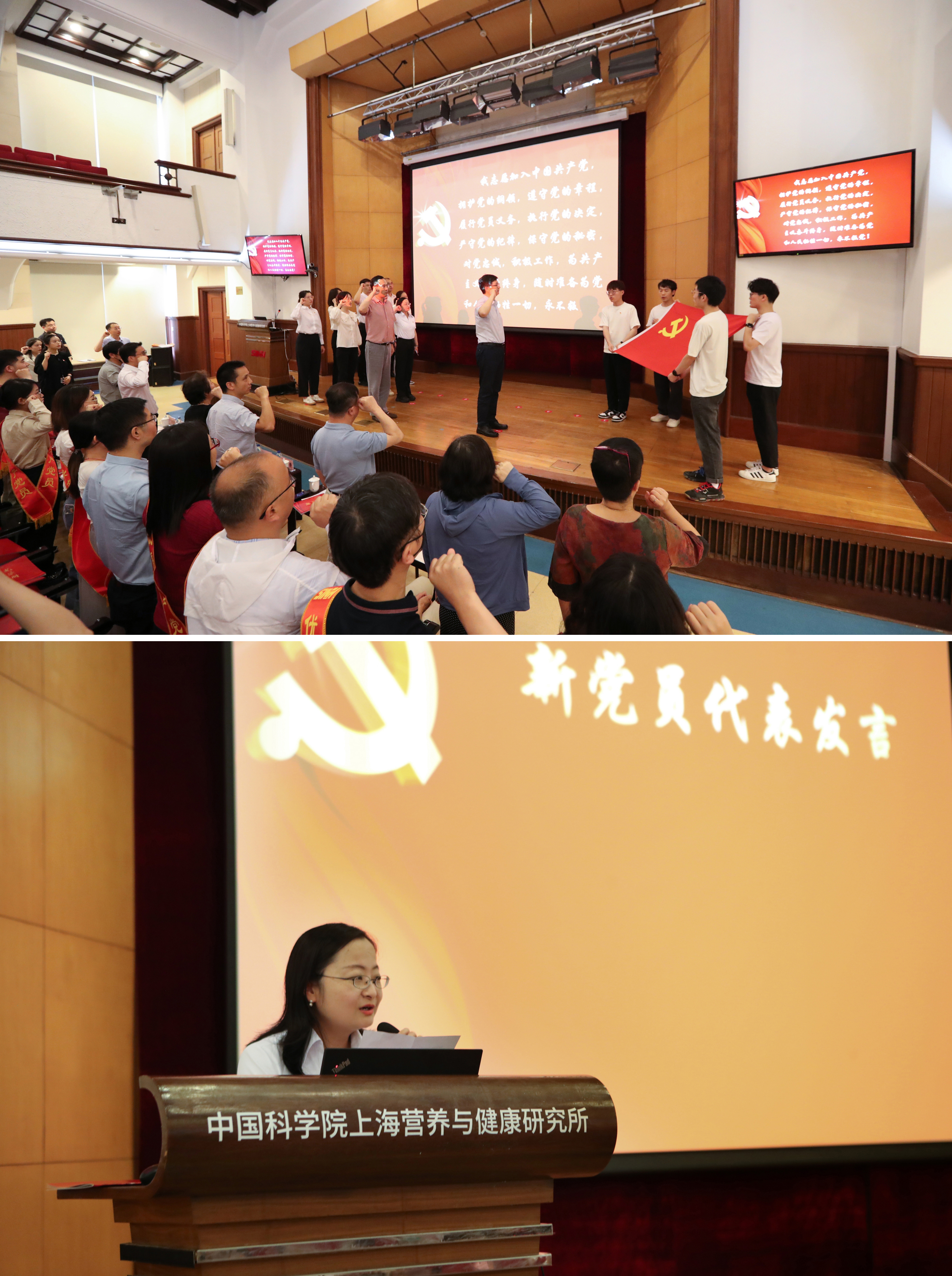 瞿荣辉带领新党员面向党旗进行庄严宣誓,全体与会党员重温入党誓词。新党员代表陈瑜洁回顾了自己在党组织的教育和关怀下成长的历程,郑重表示要向身边优秀共产党员对标看齐,立足本职岗位奋勇向前,在科研工作中发挥先锋作用,为研究所高质量发展贡献一己之力。