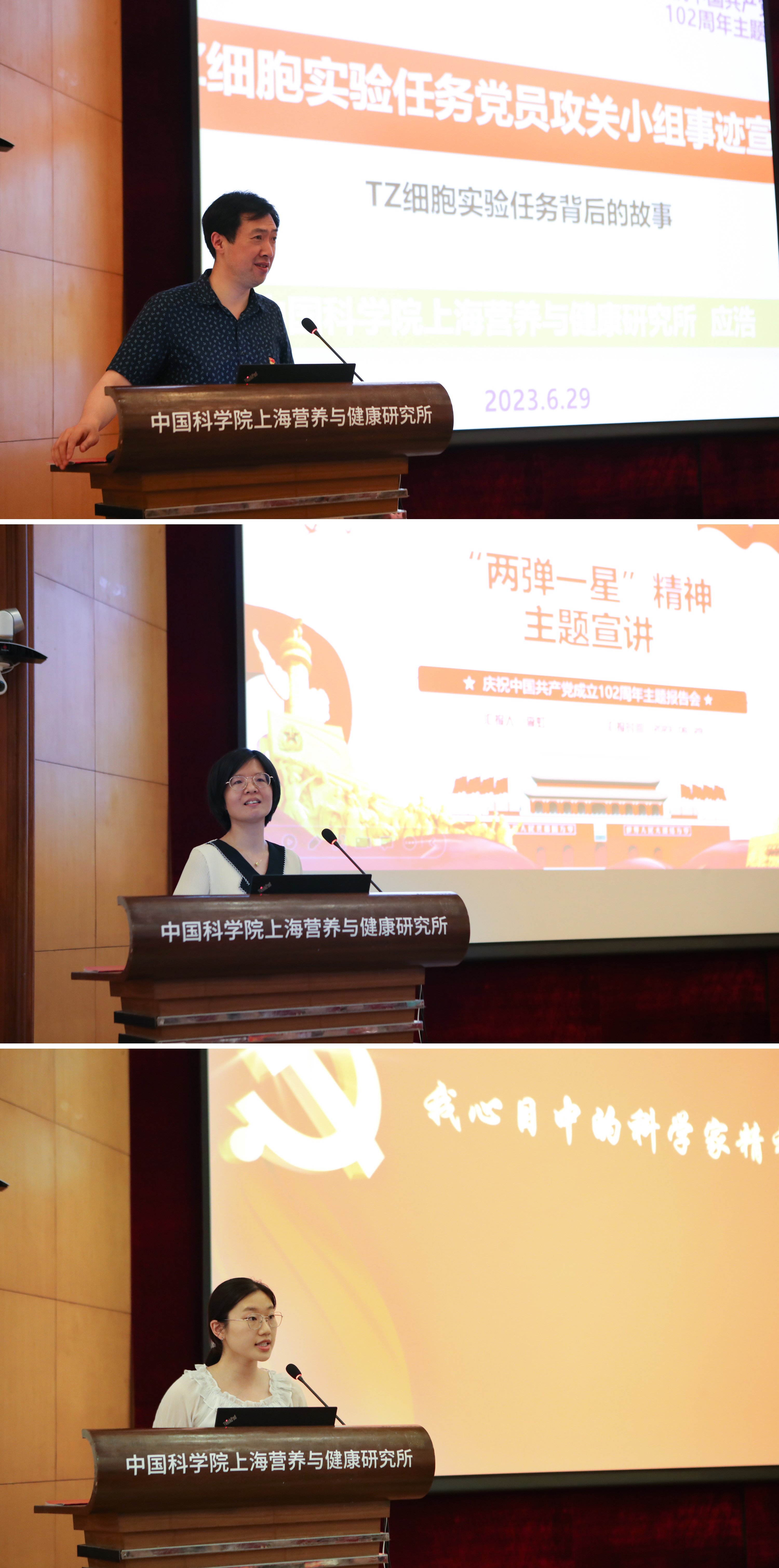 党委委员、党支部书记应浩研究员分享了TZ细胞实验任务党员攻关小组的事迹,介绍了驻扎在文昌发射场1个多月中,小组成员积极发挥严谨务实、大力协同的精神全力以赴完成细胞实验的特殊经历。党支部书记李虹研究员参加研究所组织赴青?!傲降恍恰毖兄频氐难翱疾旌笊钣懈形?,表达了对原子城环境之苦却能催生出“原子城奇?!钡耐蚍指锌约白魑嗄昕萍脊ぷ髡咭坛蟹⒀铩傲降恍恰本?、勇攀科技高峰的决心。荆思雨同学深情讲述了老一辈科学家精神和身边的科学家榜样对她成长、从事科研工作的指引以及自身的感悟。