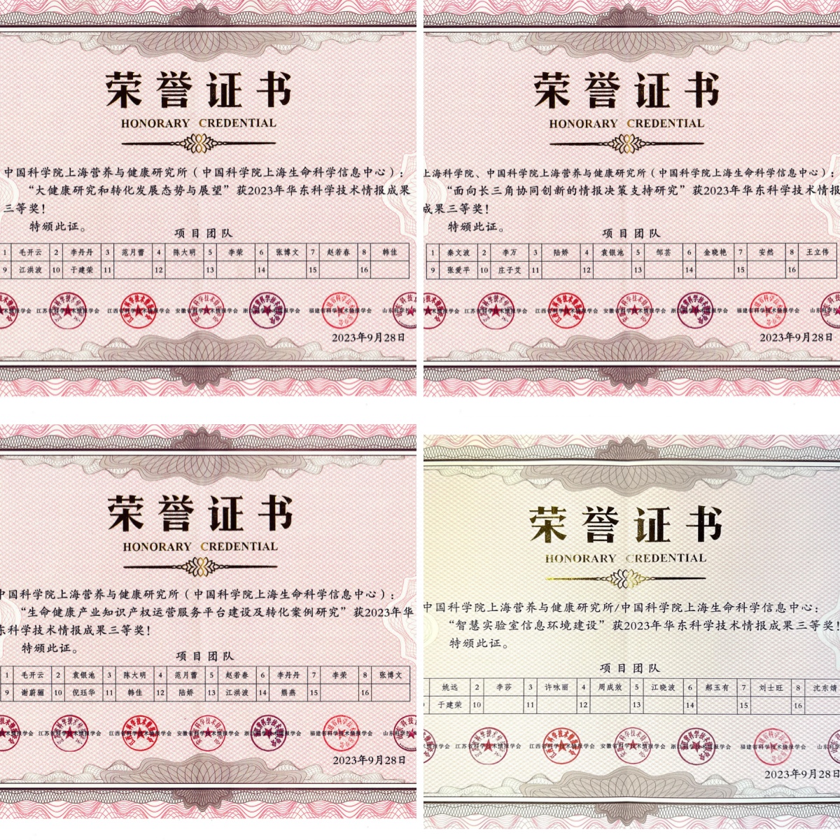 11月8日,华东地区科学技术情报成果奖与优秀工作者颁奖交流会于江西省景德镇市成功举办。中国科学院上海营养与健康研究所生命科学信息中心凭借卓越的情报工作成果和突出的贡献,在本次评选中斩获佳绩,赢得了业界和专家的高度认可与赞誉。