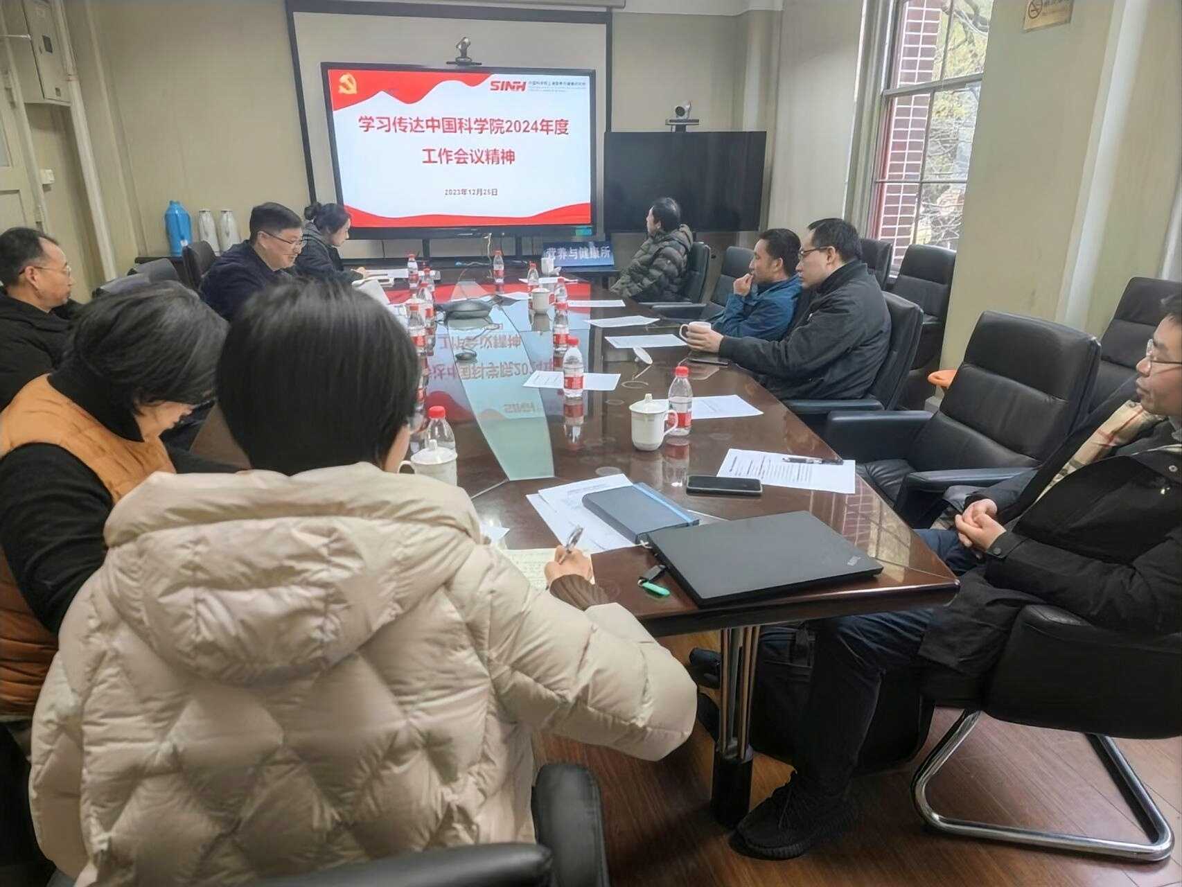 12月25日下午,中国科学院上海营养与健康研究所党委组织召开中国科学院2024年度工作会议精神传达会,研究所全体班子成员、党委委员、所务委员参加学习研讨。