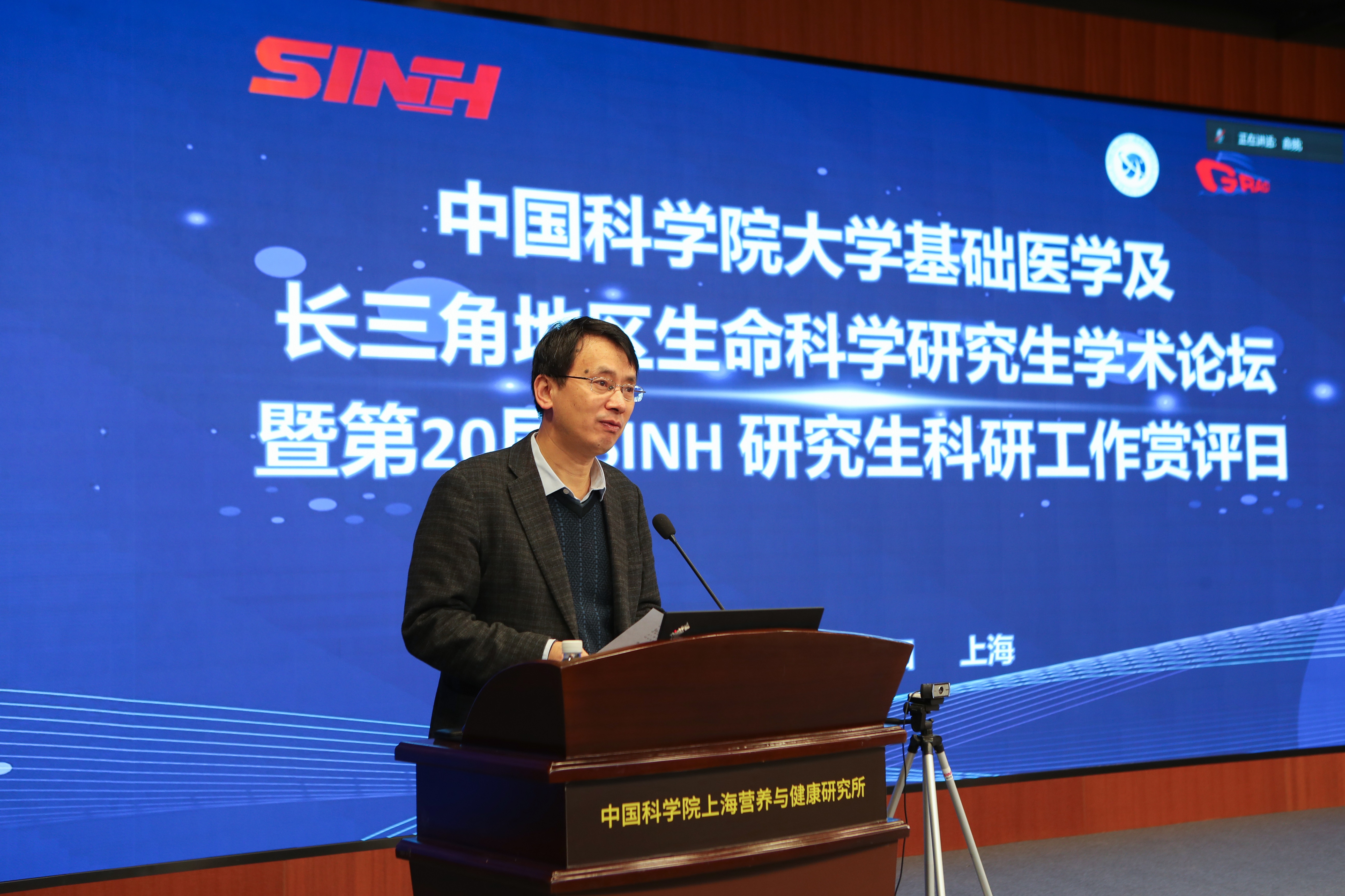 1月10日-12日,由中国科学院上海营养与健康研究所主办的中国科学院大学基础医学及长三角地区生命科学研究生学术论坛暨第20届 SINH 研究生科研工作赏评日(英文简称GRAD)活动在上海顺利举办。出席本次论坛的嘉宾包括中国科学院大学副校长金德鹏、中国科学院上海分院副院长高召兵、中国科学院上海分院团委书记、教育处负责人过宣帆、广州国家实验室李亦学研究员、中国科学院分子细胞科学卓越创新中心陈玲玲研究员、苏州大学时玉舫教授、香港城市大学尹慧勇教授、上海交通大学医学院上海免疫学研究所李斌教授、中山大学徐春亮教授。营养与健康所党委书记瞿荣辉致辞并作主旨发言,论坛由副所长(主持工作)胡国宏主持。来自中国科学院10余家科学研究机构和长三角地区5所高校的200余名师生参加本次论坛。
