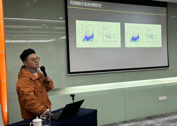 在随后的交流报告环节,来自区域中心各成员单位的参会代表分享了在各自领域深耕和凝练的经验与成果,营养与健康研究高级工程师缪祥的报告《流式细胞数据风险控制》获得与会人员一致好评。