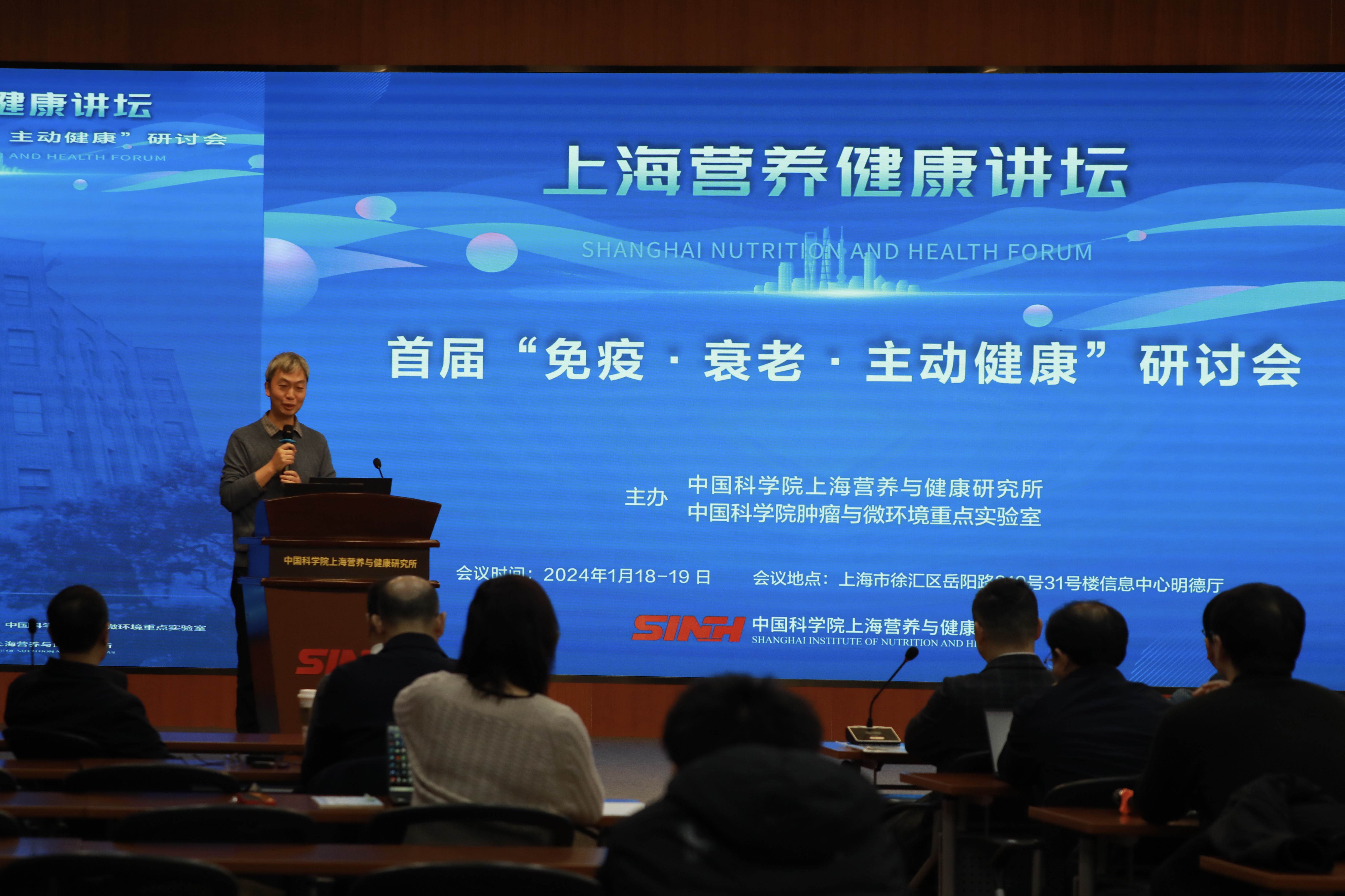 为增进学术交流,凝聚“免疫与衰老”方向专家智慧,探讨领域内前沿研究进展和创新性学术思想,中国科学院上海营养与健康研究所、中国科学院肿瘤与微环境重点实验室依托“上海营养健康讲坛”于1月19日成功举办首届“免疫·衰老·主动健康”研讨会?;嵋橛捎虢】邓ひ獯芯吭敝鞒?,吸引了100余位科研人员和学生参加。