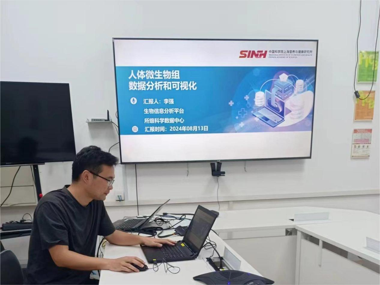 8月13日下午,中国科学院上海营养与健康研究所所级科学数据中心举办了“人体微生物组数据分析和可视化”培训,旨在帮助科研人员了解和掌握相关技术和工具,以提升自身生物信息分析能力。本次培训由中心资深工程师李强担任主讲人,其为中心微生物组学分析云平台(integrated Microbiome Analysis Cloud,简称iMAC)负责人,主要研究方向为微生物组学云分析流程开发及搭建、大数据分析算法开发等。