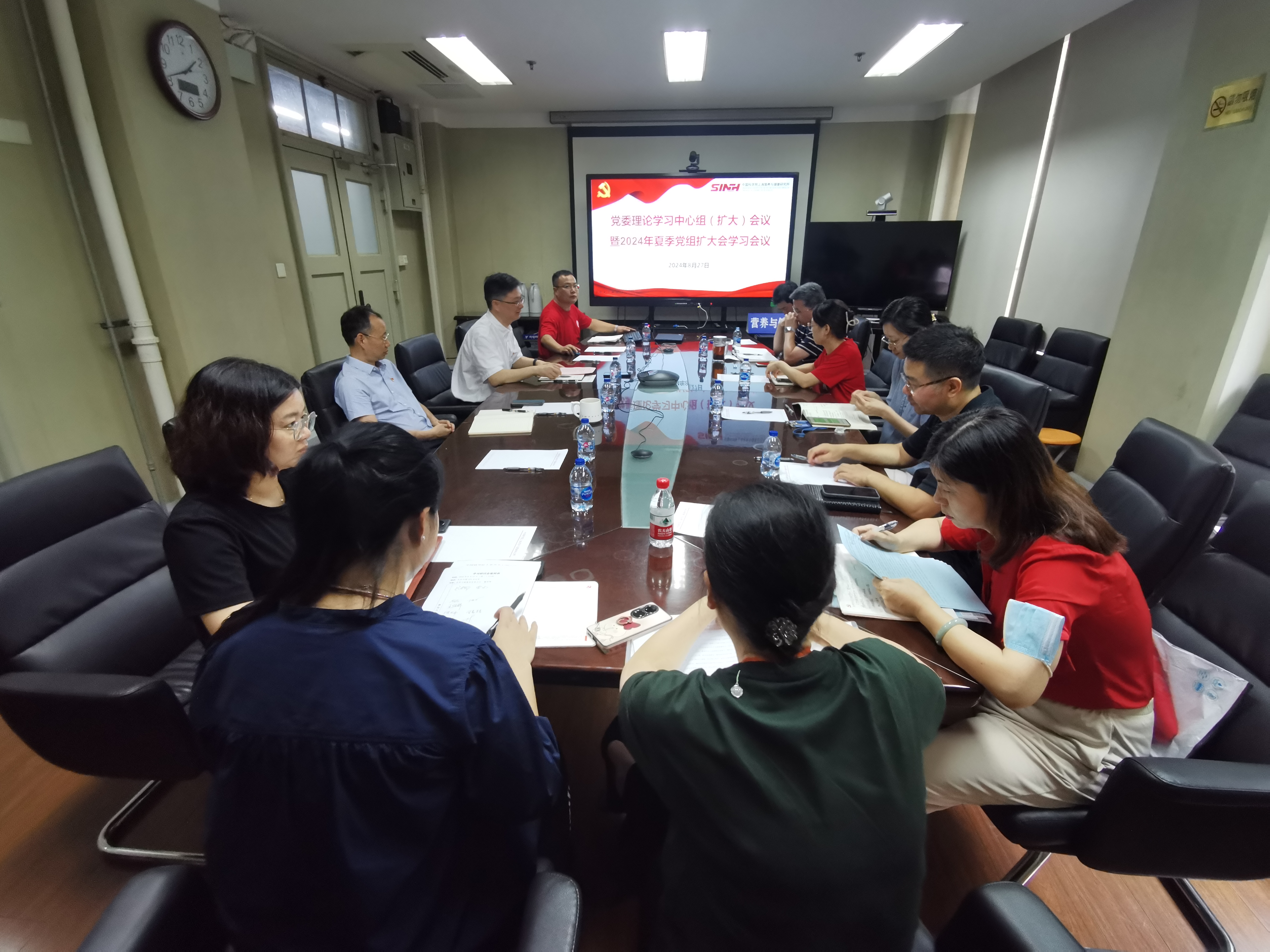 8月27日,中国科学院上海营养与健康研究所召开党委理论中心组学习会,认真学习研讨中国科学院2024年夏季党组扩大会议精神。研究所领导班子成员、党委委员、所务委员、中层干部等20余人参加学习,党委书记瞿荣辉主持会议。