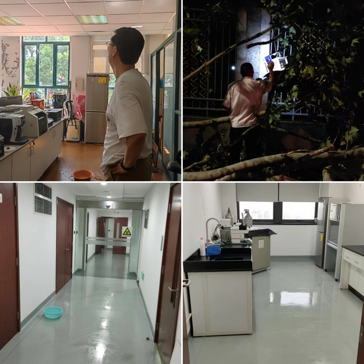 岳阳路319号信息中心明德厅会议室屋顶被折断的树枝砸穿导致漏水,后勤保障处立即开展应急处置;生理楼科研用房突发断电,后勤保障处会同物业迅速自查检修尽快恢复供电,保障了超低温冰箱内生物样本保存完好。