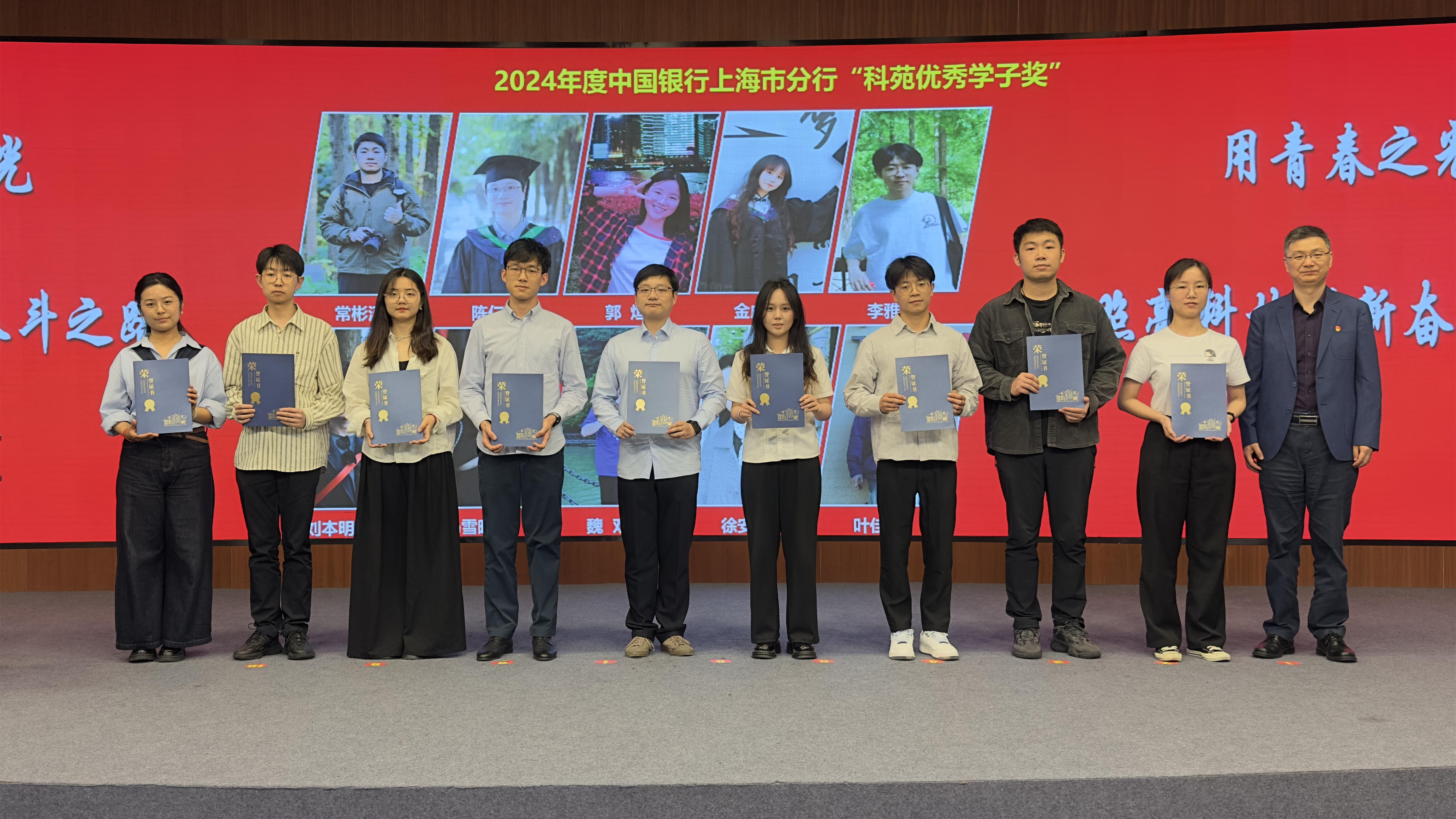 ????瞿荣辉为获得“中国科学院五四红旗团委”、“中国科学院优秀共青团员”、“中国科学院上海分院五四青年突击队”、中国银行上海市分行“科苑优秀学子”等荣誉称号的集体和个人颁发荣誉证书。