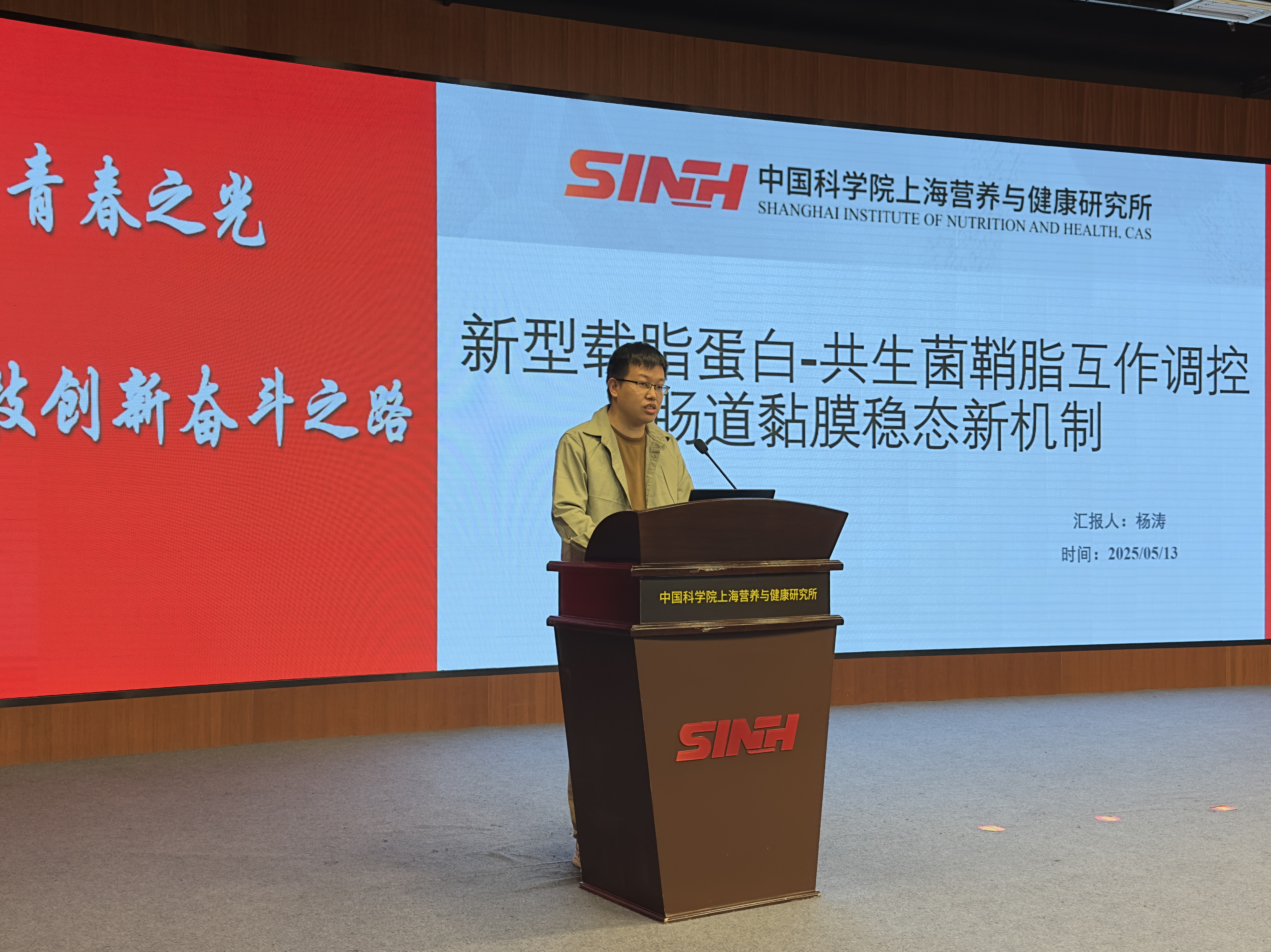 为纪念五四运动106周年,根据深入贯彻中央八项规定精神学习教育有关要求,5月13日下午,中国科学院上海营养与健康研究所举行“科技强国青年说”主题沙龙暨党委书记面对面座谈会。本次活动以“学精神、强作风、促攻坚”为主题,共有青年职工代表、研究生代表等50余人参加。研究所党委书记瞿荣辉出席活动。