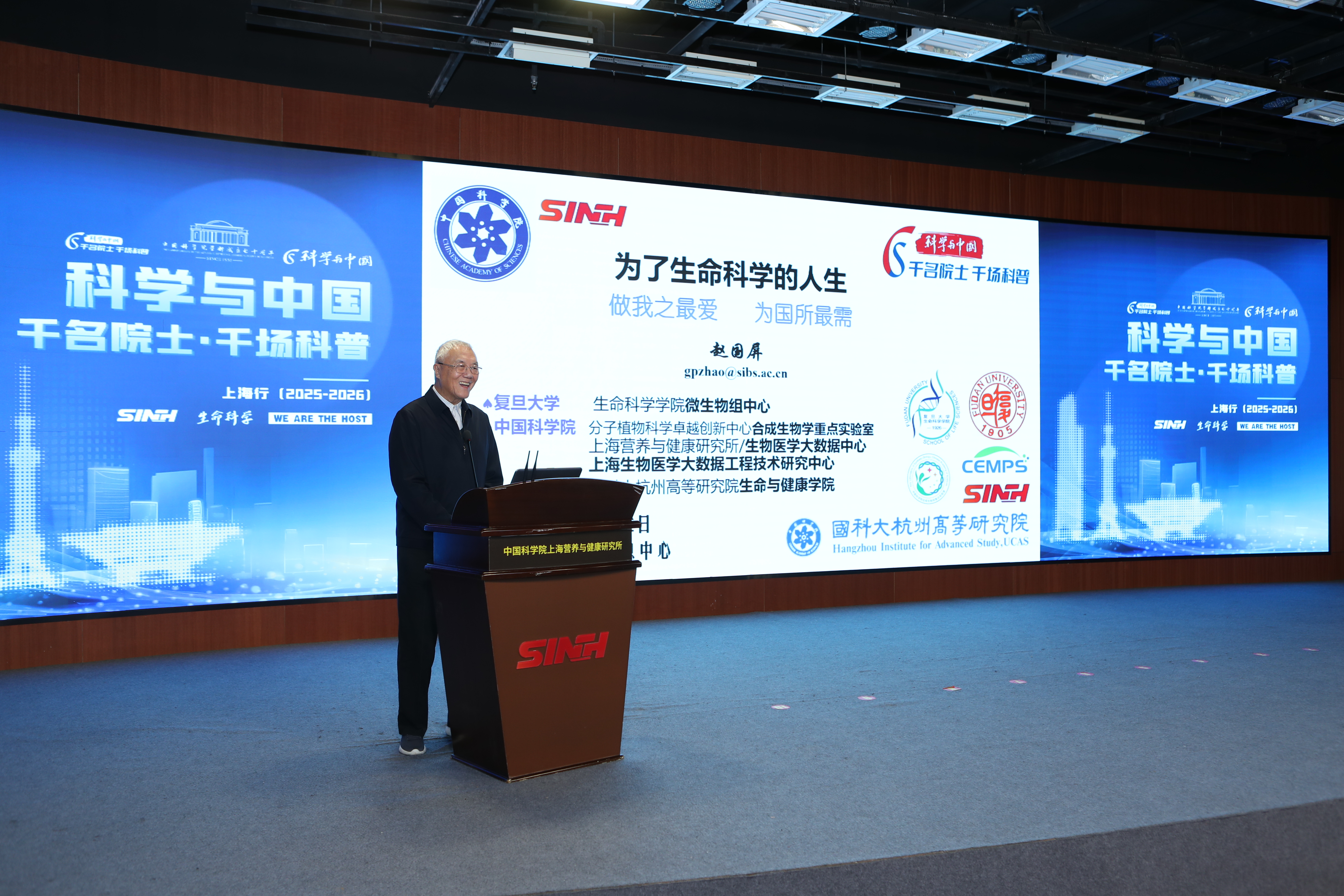 12月2日,“科学与中国——千名院士·千场科普”上海行活动(2025-2026)启动。首场科普活动在中国科学院上海营养与健康研究所以线上线下相结合的方式举行。位于岳阳路的科学大院学术氛围浓厚,来自营养与健康所、上海市研发公共服务平台管理中心、上海科学学研究所、《生命科学》编委会等科研单位及组织的科技工作者、研究生们与线上3700余名公众共同聆听了赵国屏院士和吴家睿研究员的精彩报告。